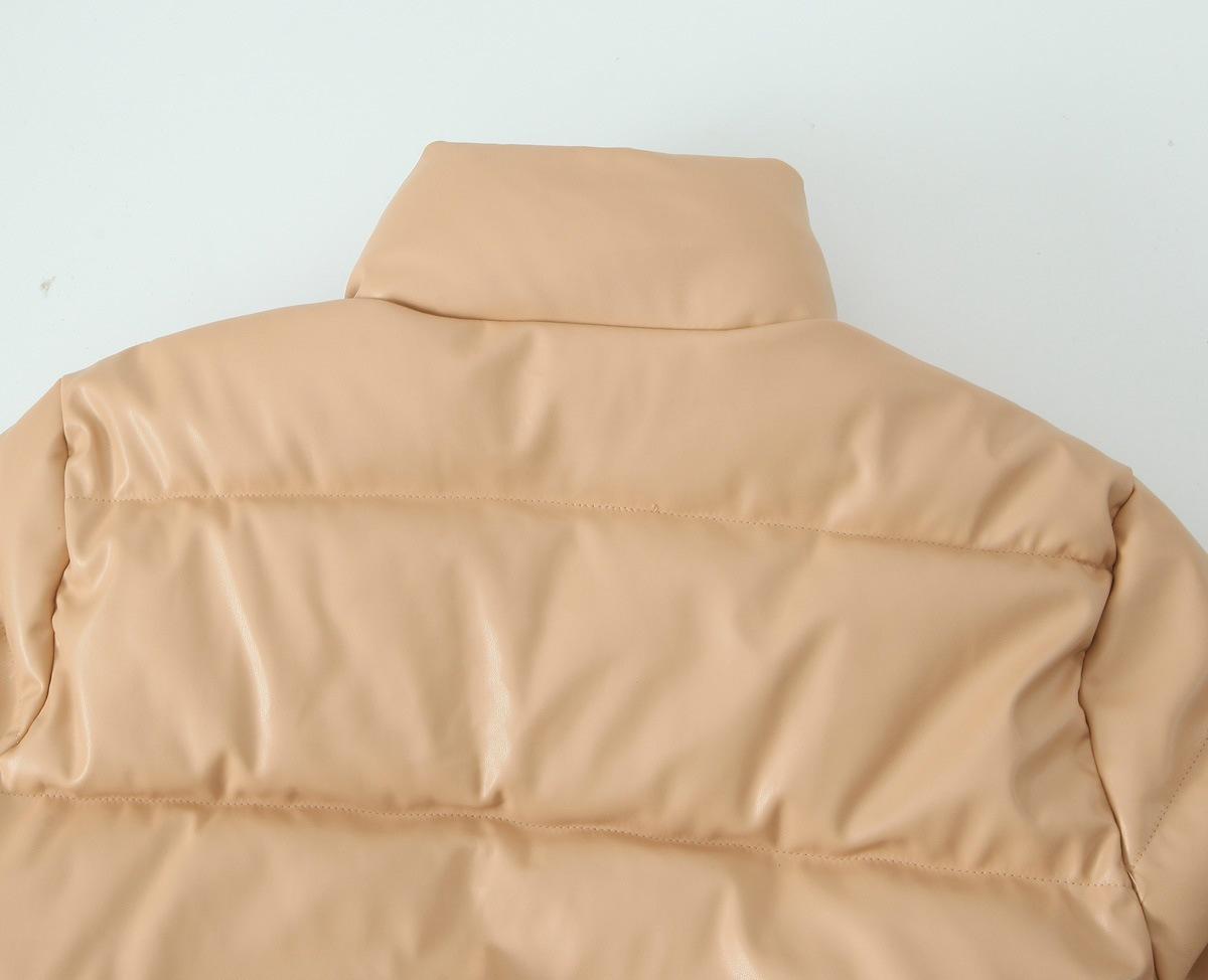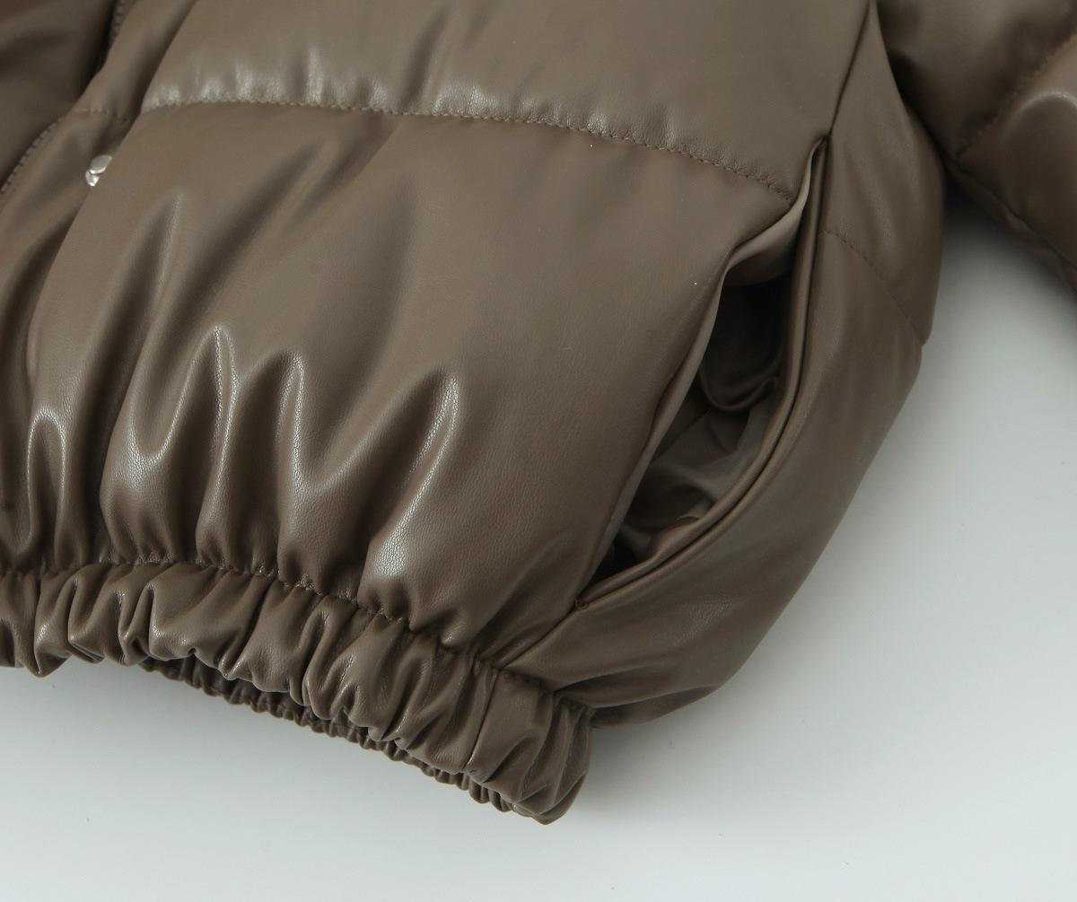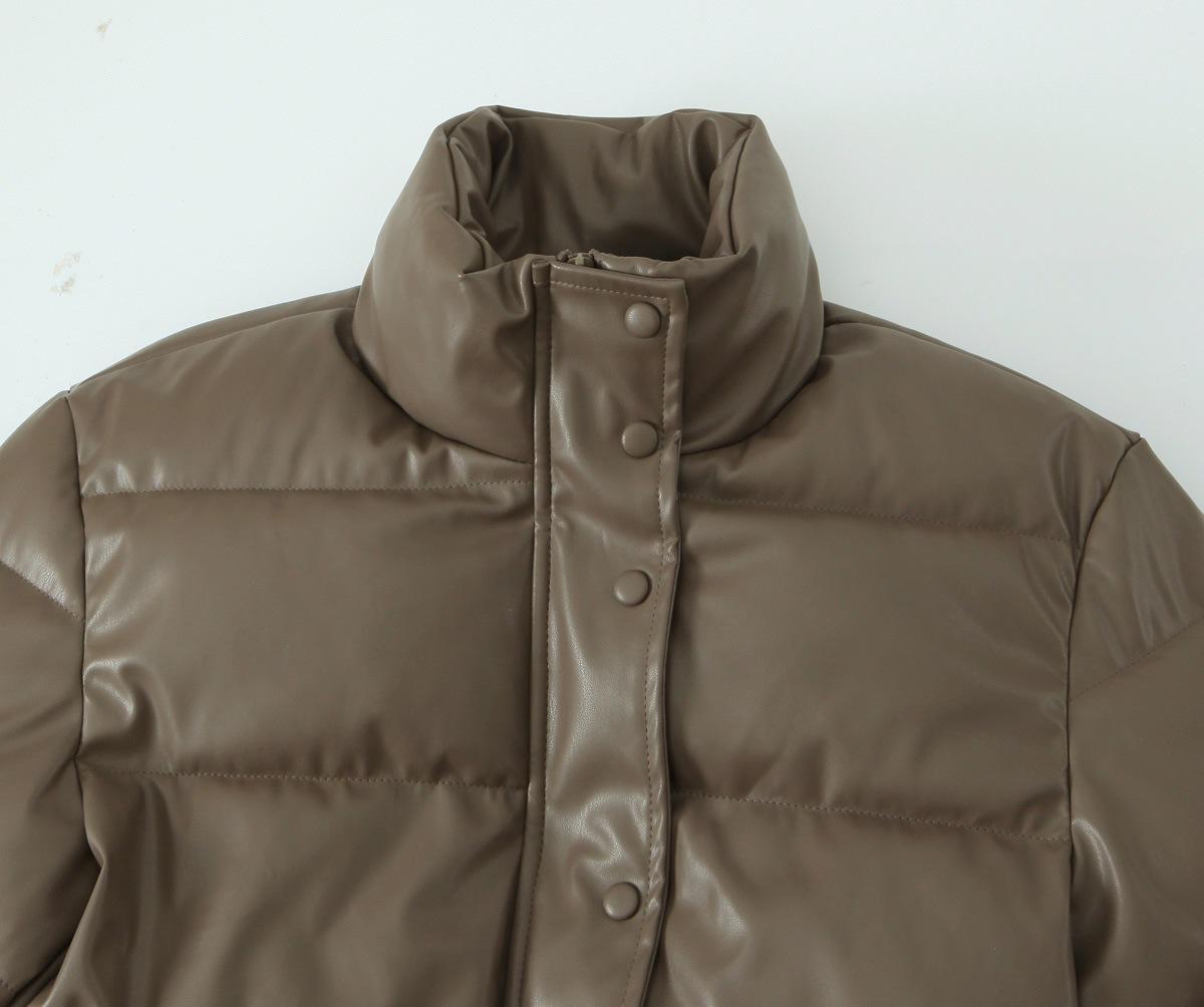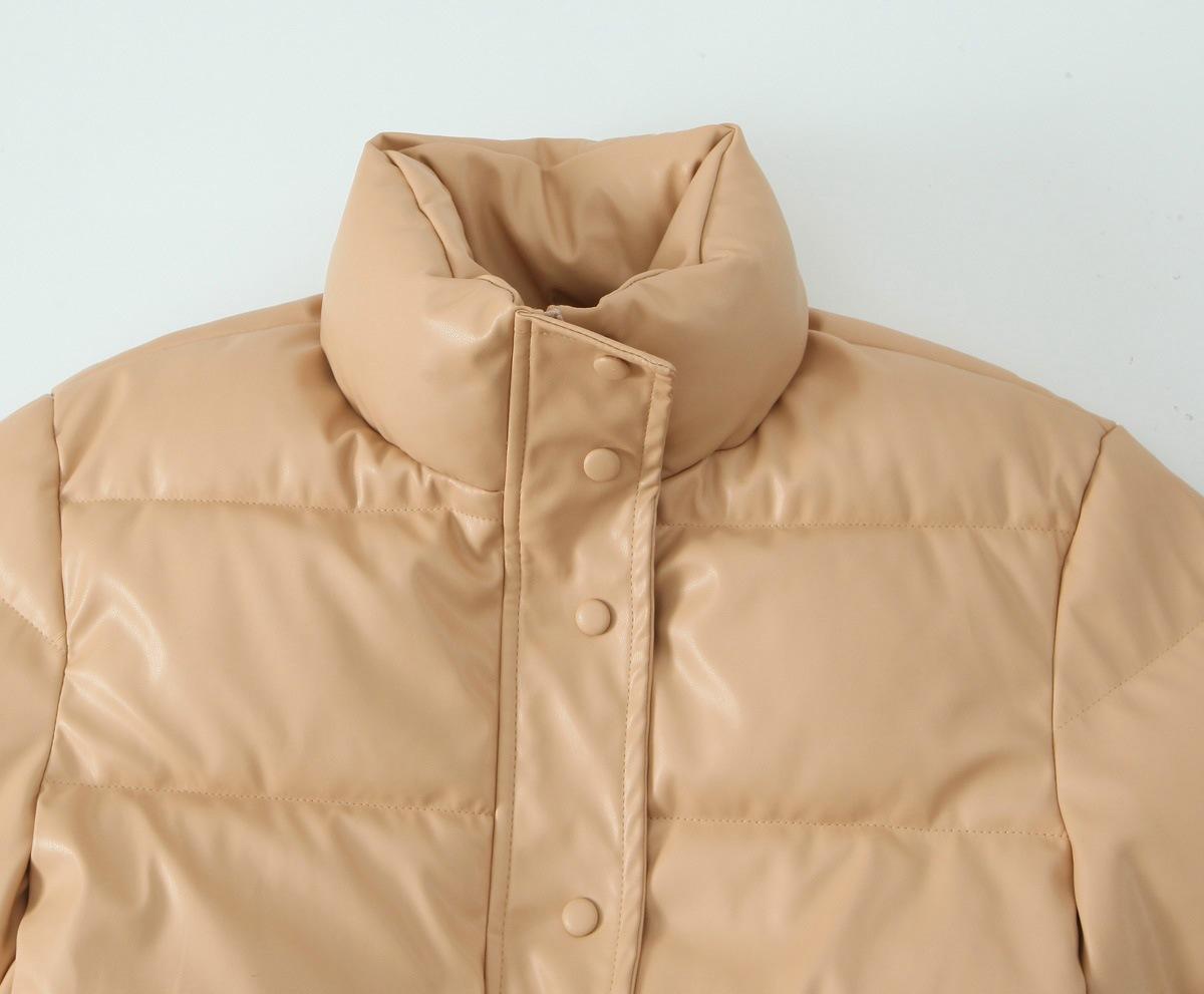Abrigo de algodón de cuero sintético estilo europeo y americano para mujer, abrigo corto de algodón con cuello vertical, abrigo informal de estilo locomotora para chica.