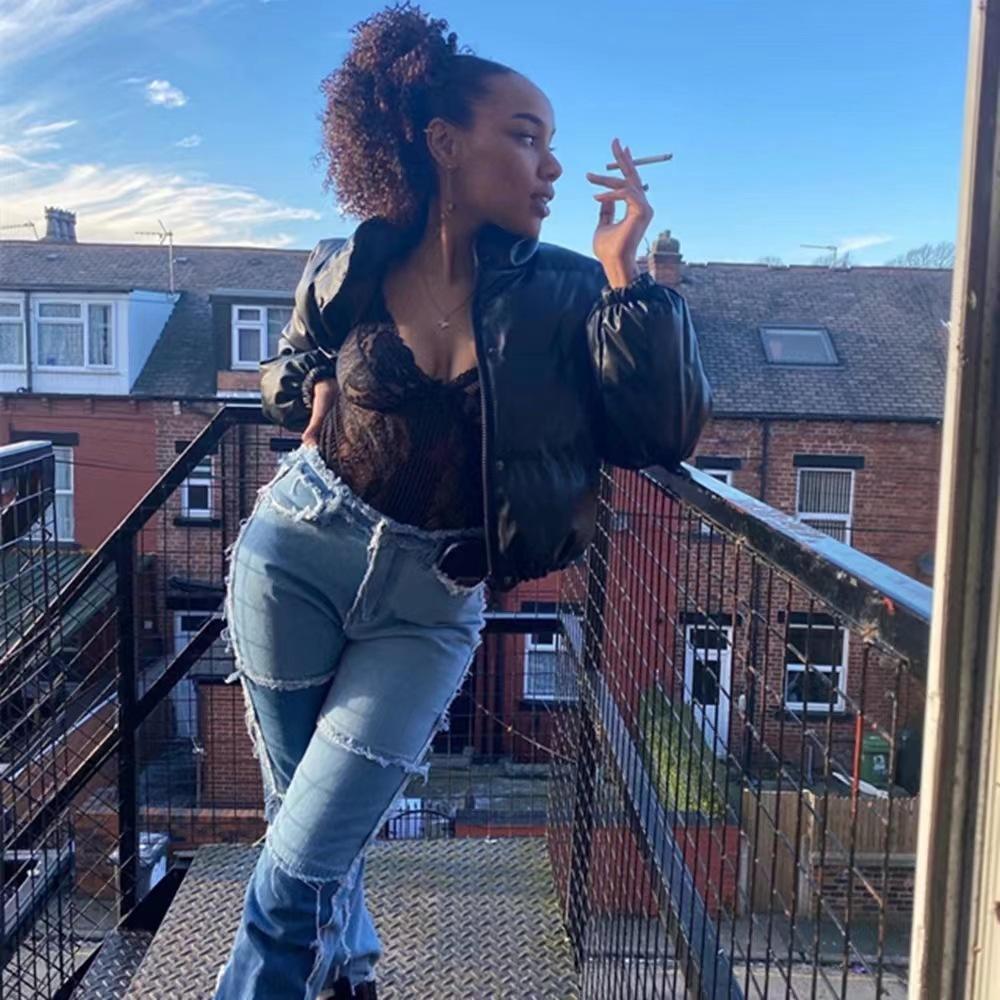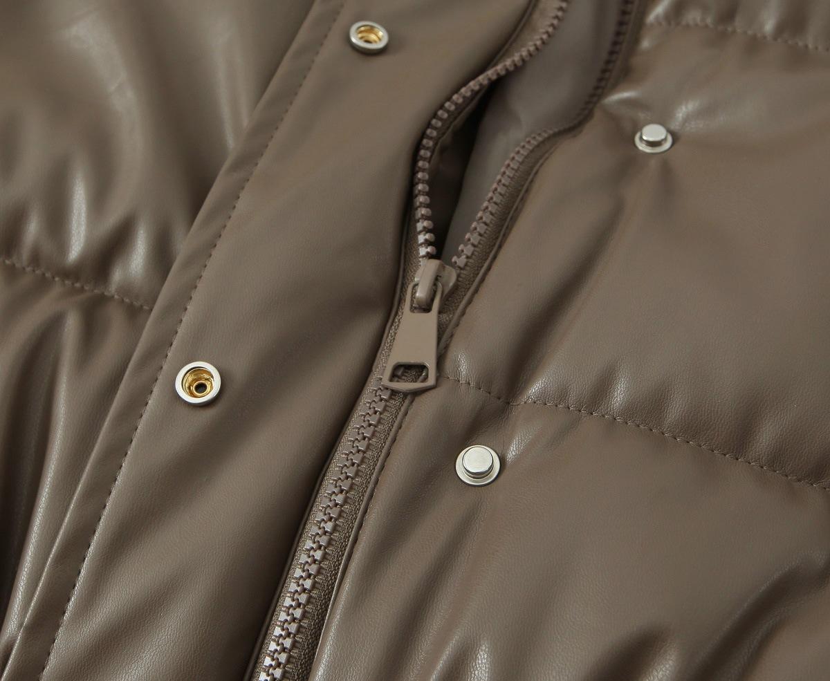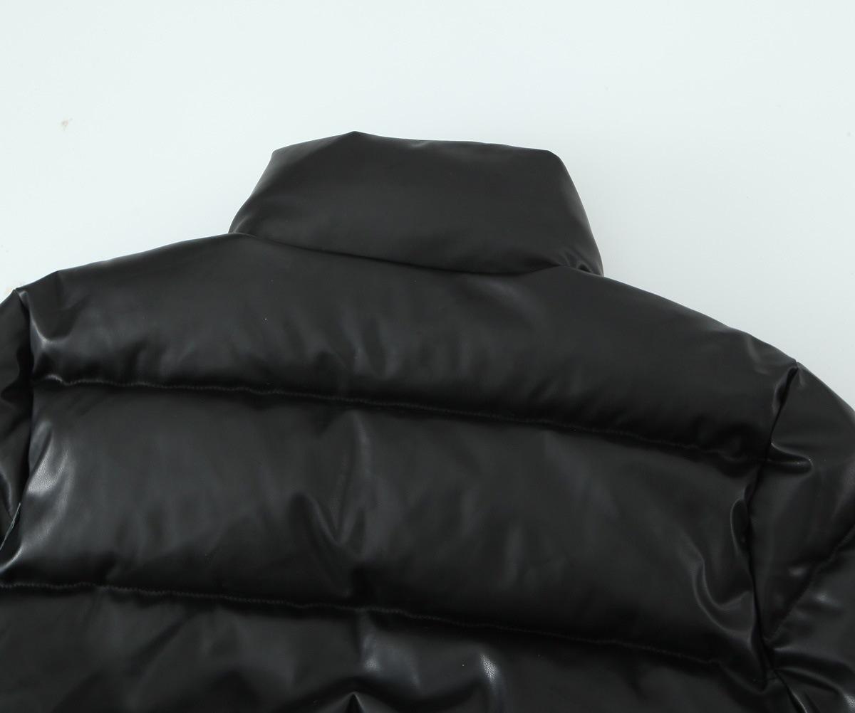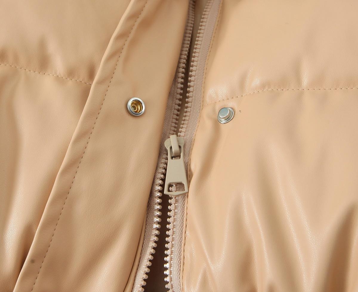 Abrigo de algodón de cuero sintético estilo europeo y americano para mujer, abrigo corto de algodón con cuello vertical, abrigo informal de estilo locomotora para chica.