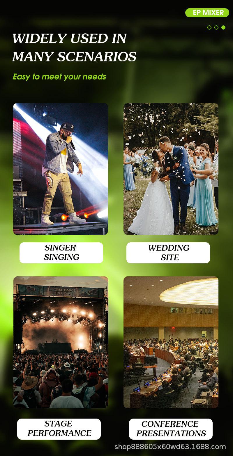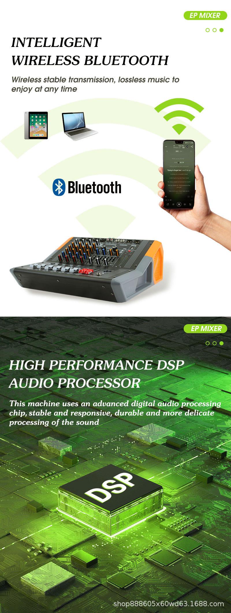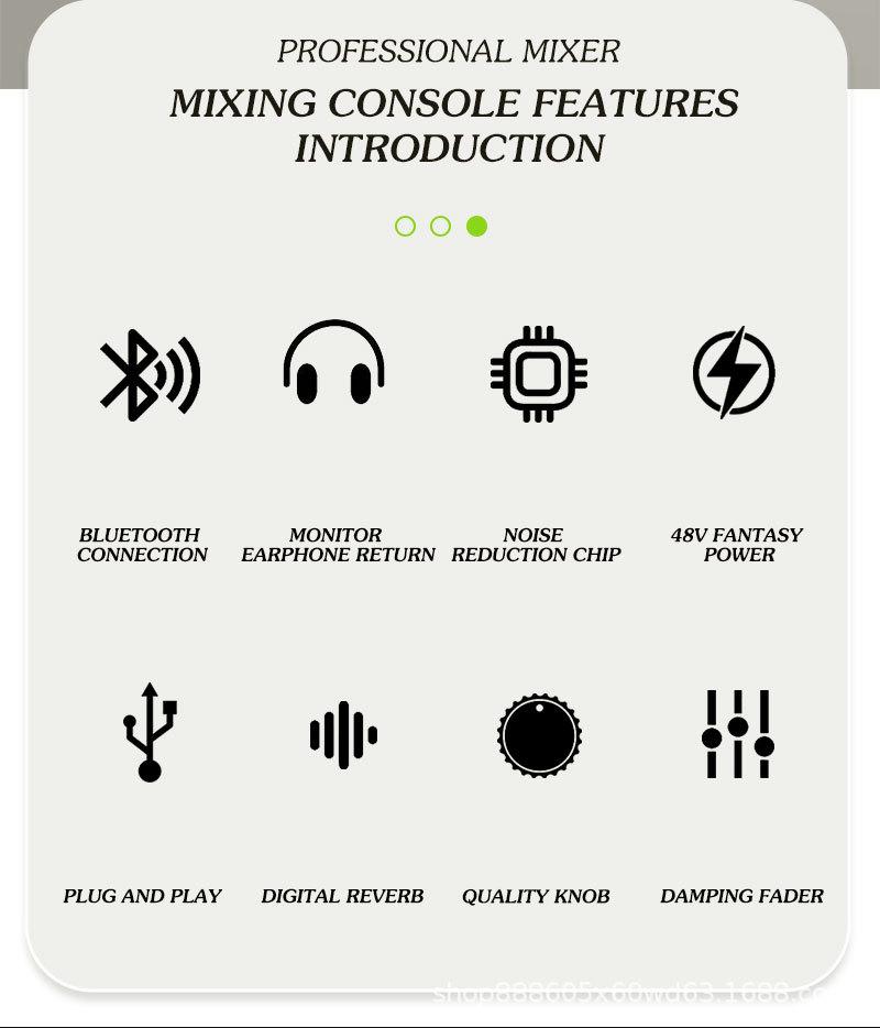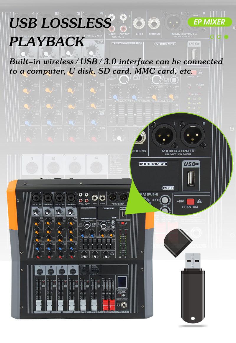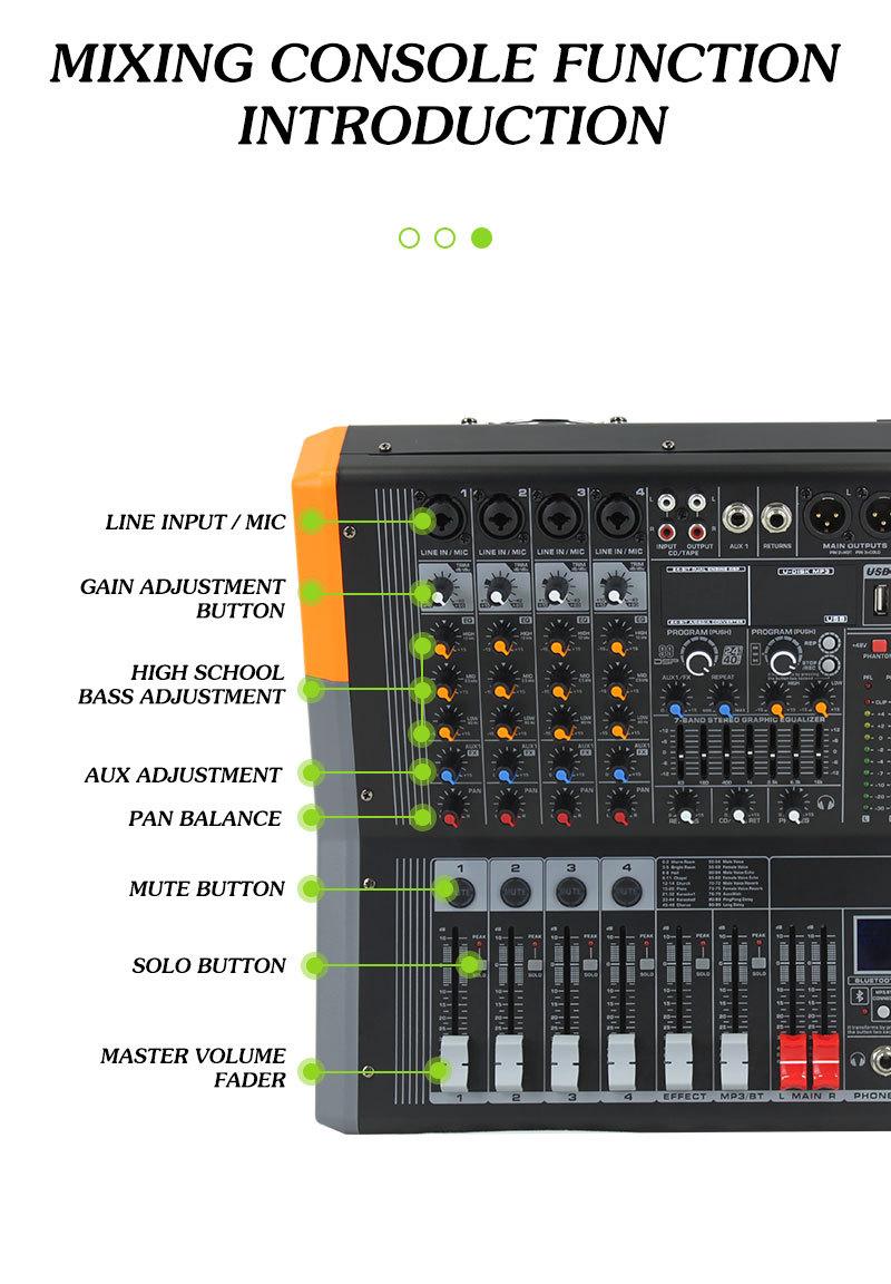 Mezclador estéreo con efectos incorporados y canal de bajo ruido con amplificador