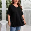 Comercio Exterior Ropa para Mujer de Talla Grande Europea y Americana 2026 Nueva Sexy Cuello en V Suelta Casual Abertura Color Sólido Camiseta de Manga Corta Top