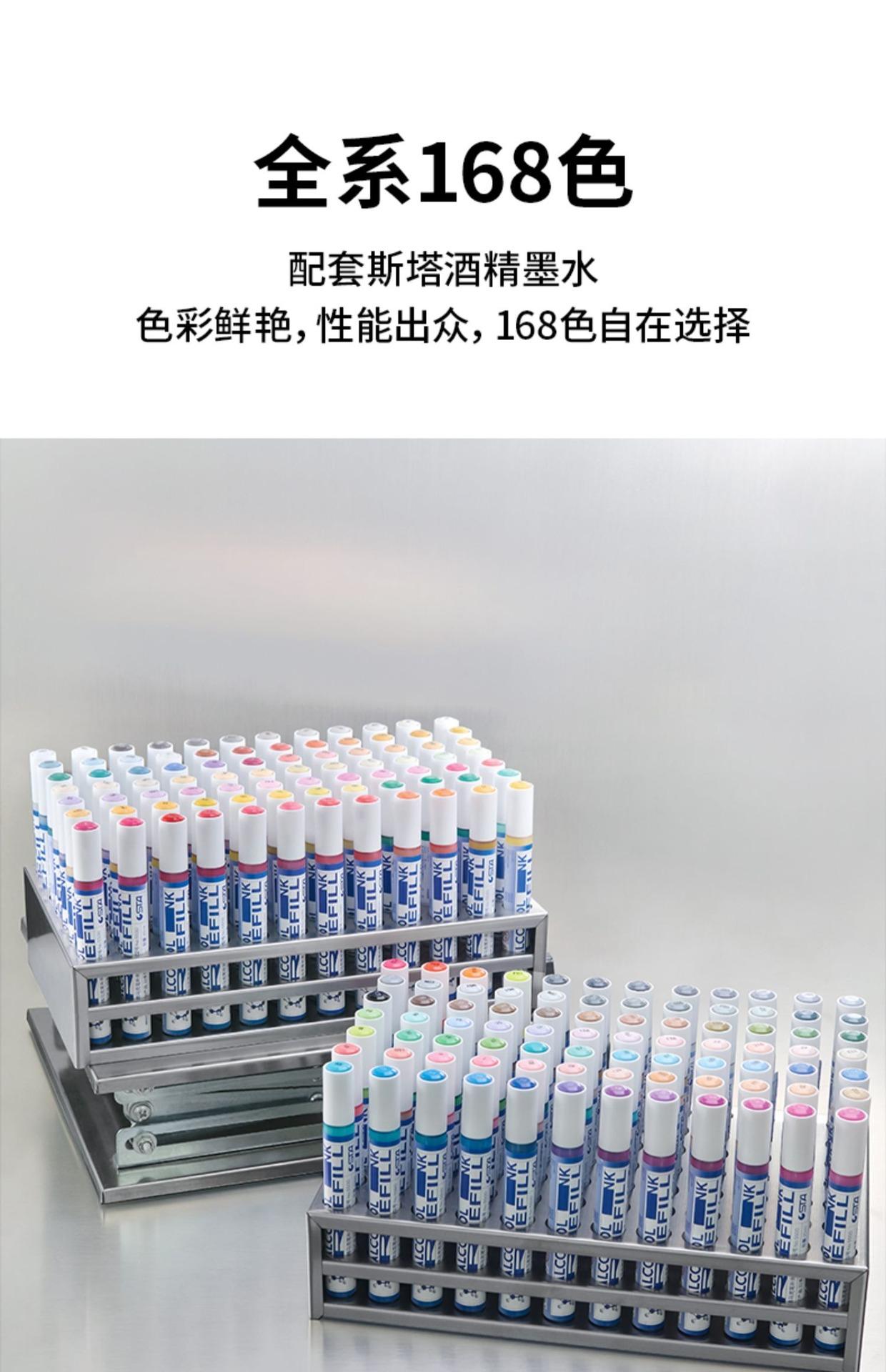 Bolígrafo STA Sta de punta ancha grande, 9300 ml, tinta al alcohol y aceite, punta dura, 20 mm, POP, 168 colores