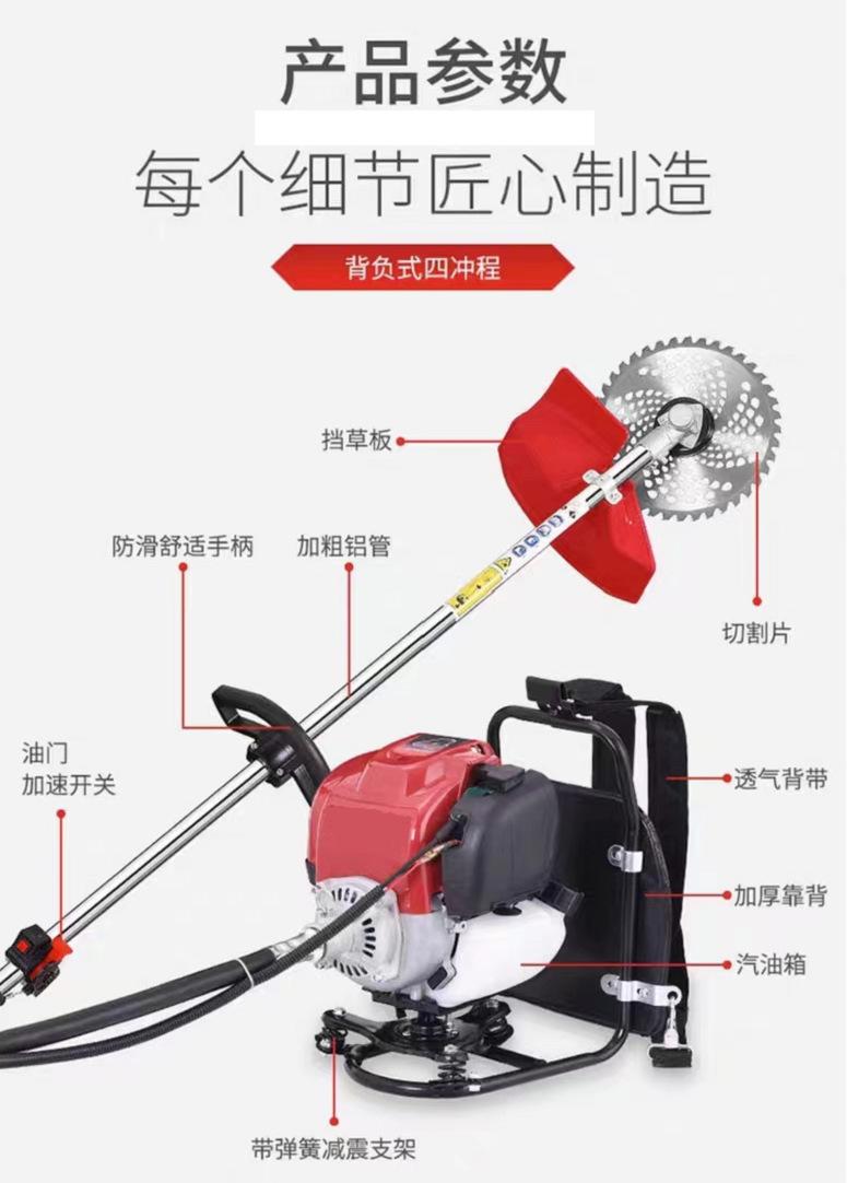 Cortadora de césped, cortacésped, cortacésped doméstico pequeño de mochila colgante de cuatro tiempos, desbrozadora, cosechadora de gasolina