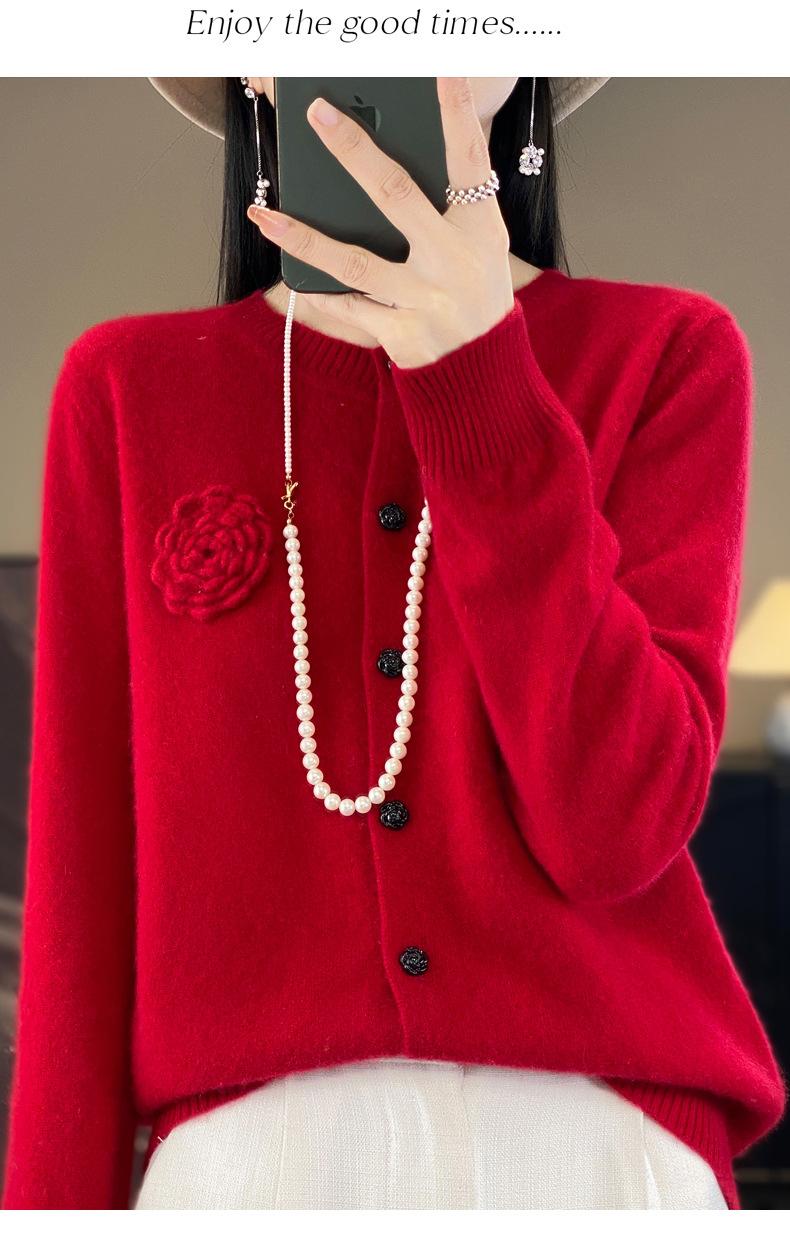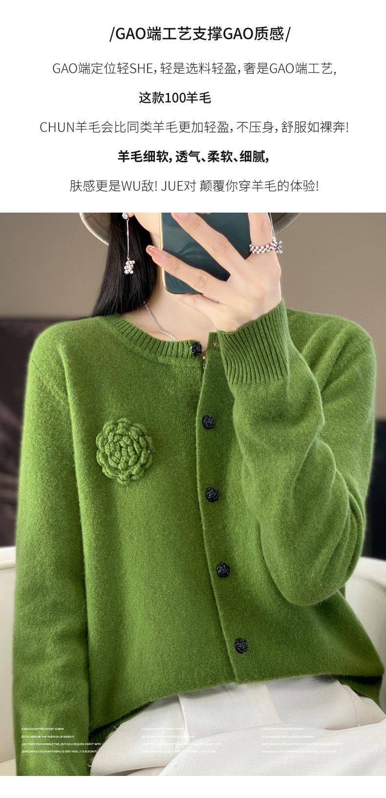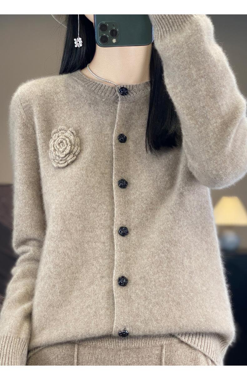 Nuevo Cárdigan de Lana de Color Sólido 100 para Otoño e Invierno para Mujer, Suéter de Punto Exterior de Moda Holgado de Cuello Redondo para Mujer