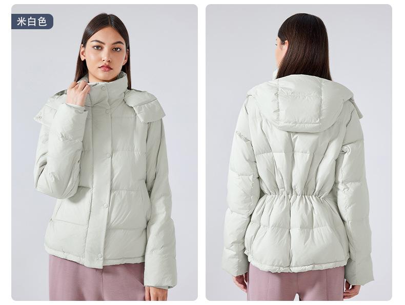 Invierno Nuevo Cuello Alto con Capucha Cálida Chaqueta de Plumón para Mujer Ropa de Trabajo Versátil Cintura con Cordón Chaqueta Cortavientos Daw160