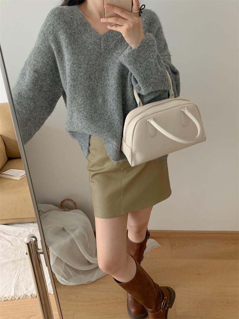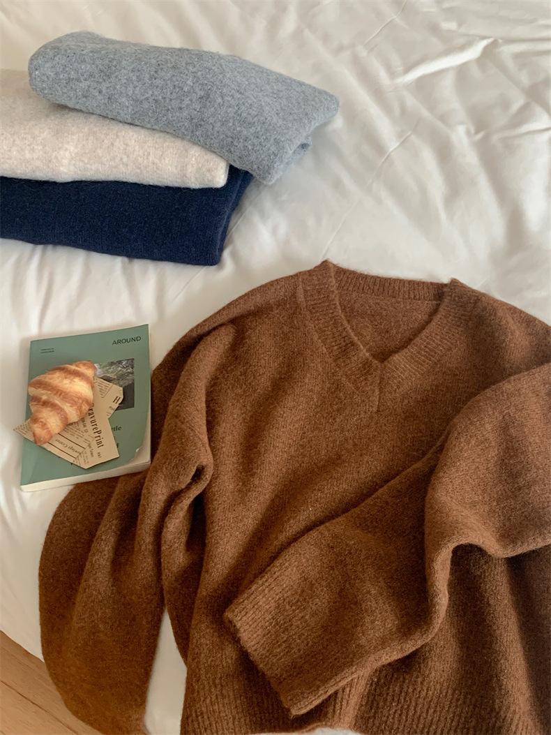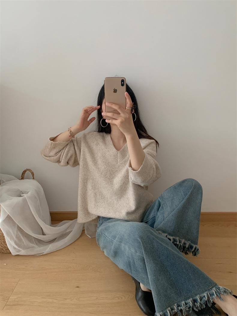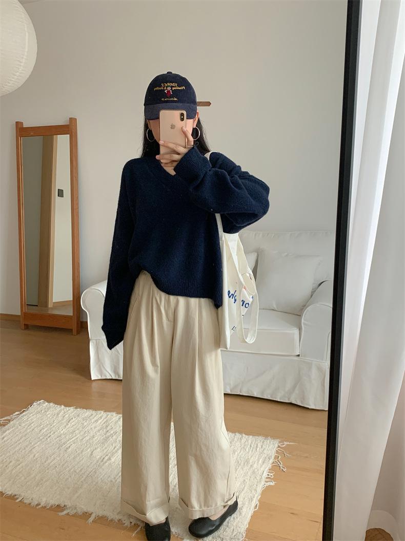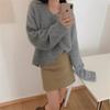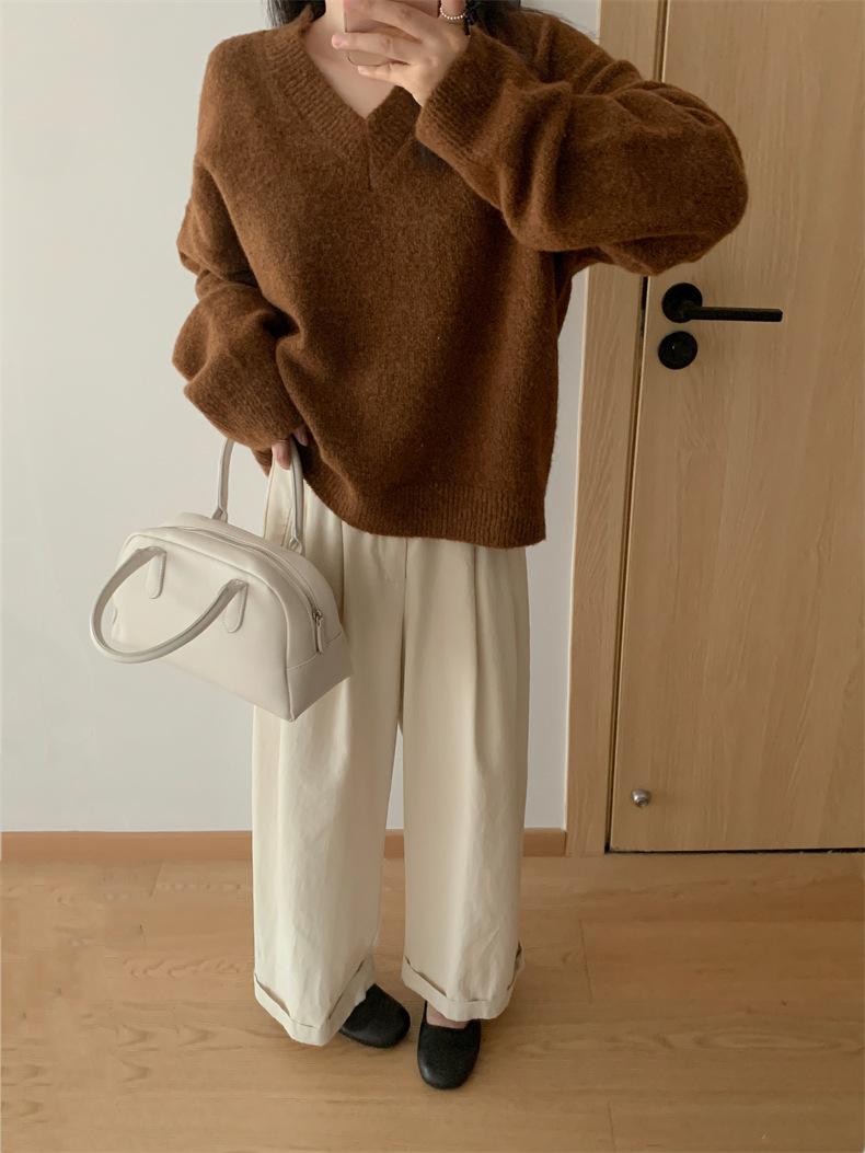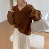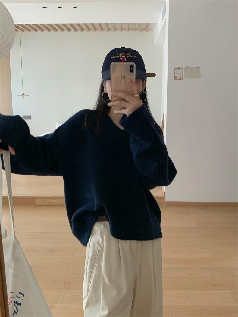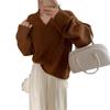 Suéter de cuello en V suave y encerado para mujer, otoño e invierno, nuevo, suelto, estilo perezoso, camisa de punto corta, base superior para mujer