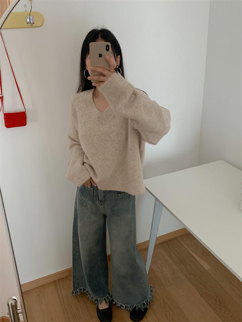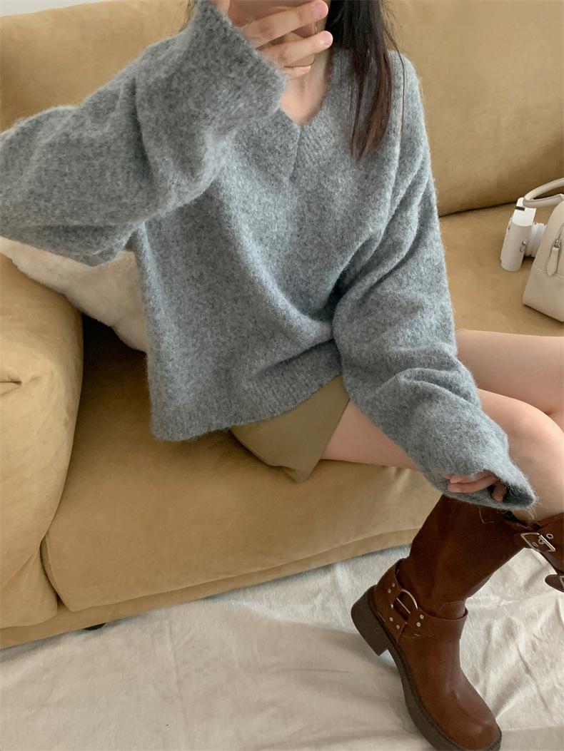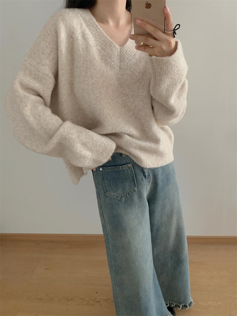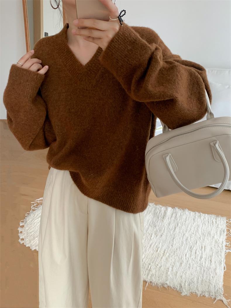 Suéter pulóver de terciopelo visón imitación leche suave y glutinoso para mujer, nuevo para otoño e invierno, tejido de punto holgado de aguja con sentido de alta gama perezoso