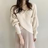 Suéter de punto holgado de talla grande transfronterizo con cuello en V perezoso y temperamento para mujer, nuevo estilo otoño-invierno, prenda interior, camisa básica de punto, top holgado