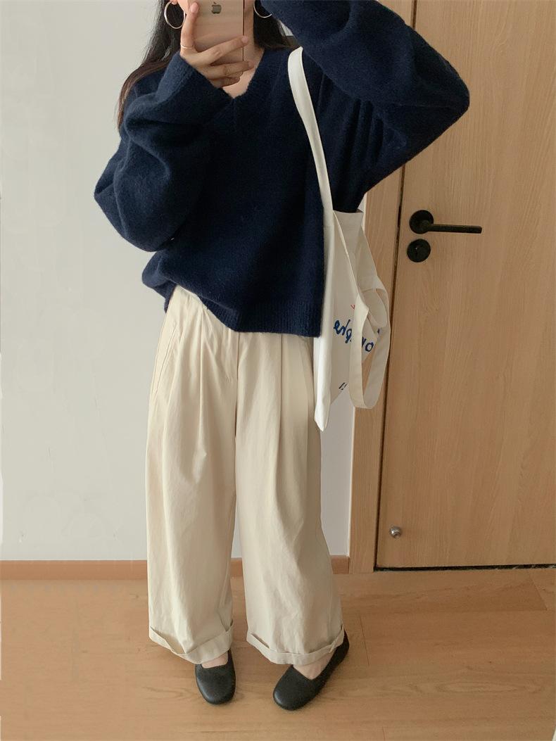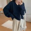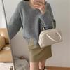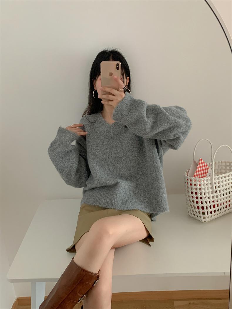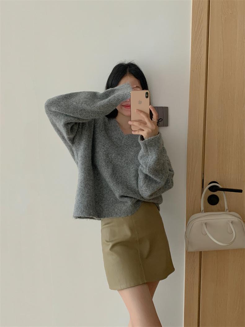 Suéter minimalista de punto de color sólido estilo coreano suave y glutinoso para mujer, top nuevo de otoño e invierno, holgado versátil de cuello redondo, conjunto de suéter de punto