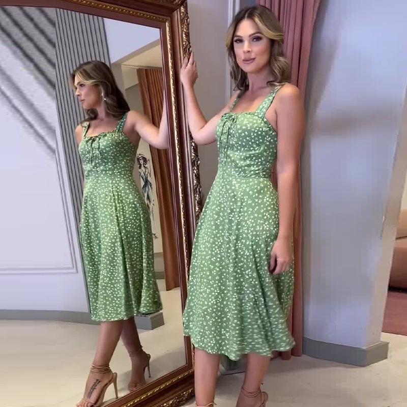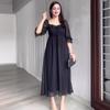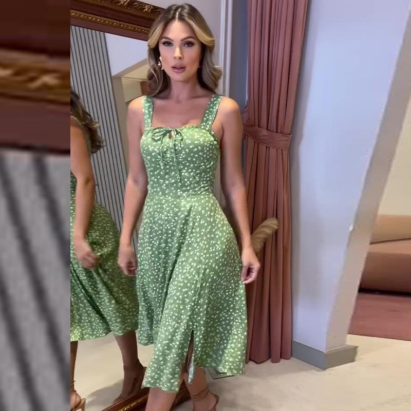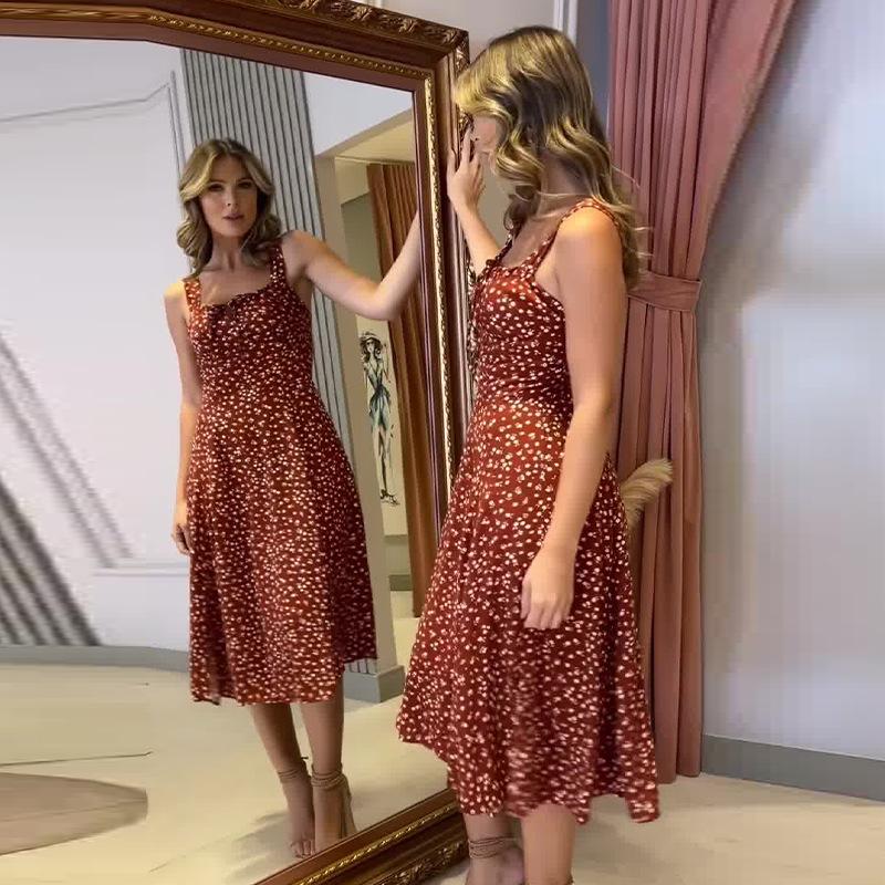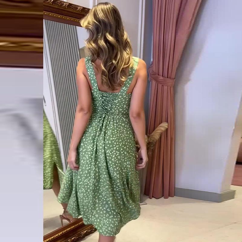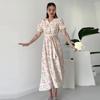 Vestido floral de moda con cuello cuadrado retro francés para mujer, estilo transfronterizo europeo y americano, de verano 2024