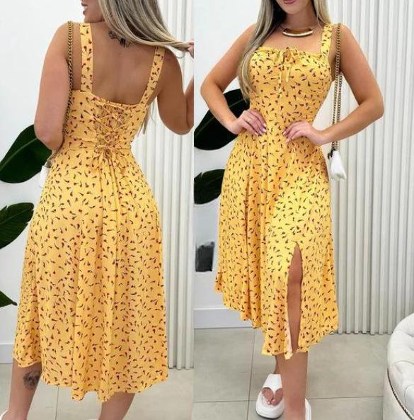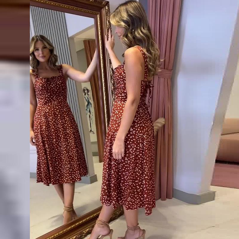 Verano 2024 Nuevo Europeo y Americano Transfronterizo Amazon Transfronterizo Vestido Largo Floral de Estilo Vacacional Casual Bohemio para Mujer