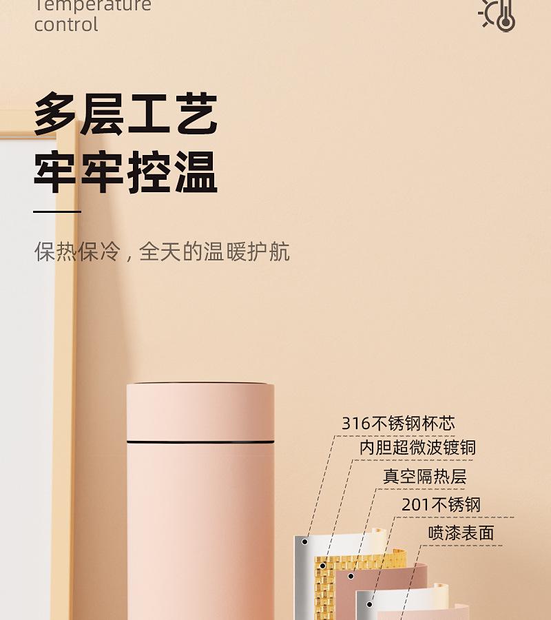 Taza termo inteligente de doble capa de vacío 316, con medición de temperatura y pintura de goma, pantalla digital, de acero inoxidable, para té, regalo de empresa