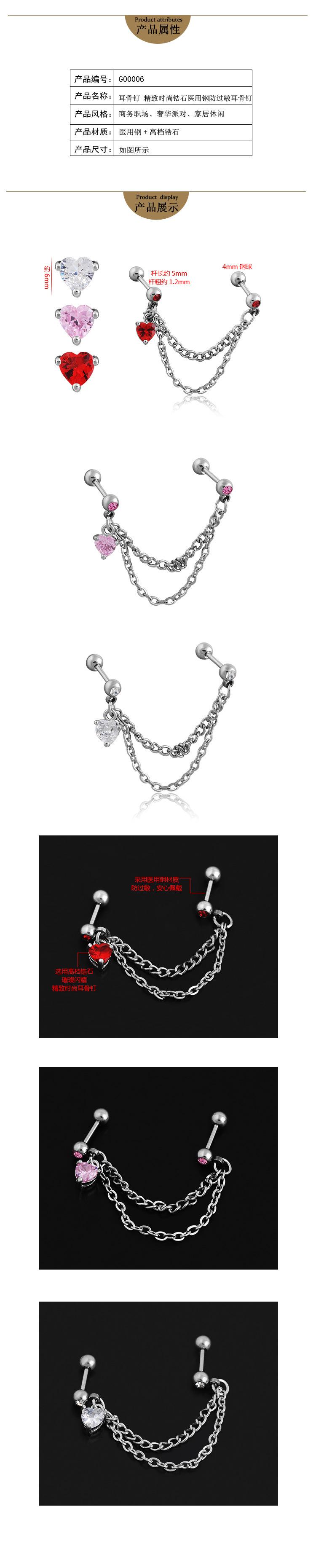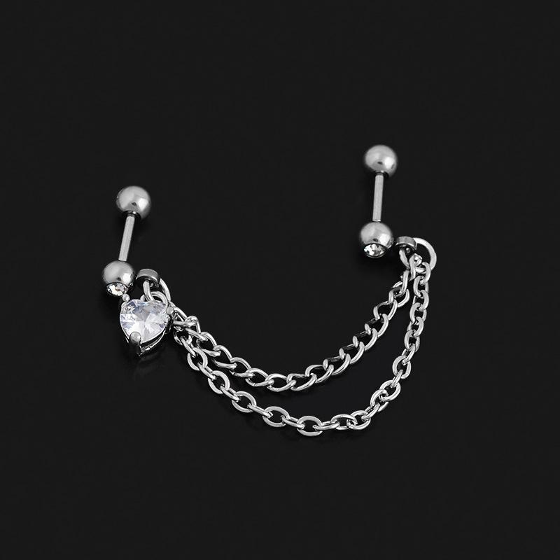 Aretes Transfronterizos al Por Mayor Moda Europea y Americana Trendy Amor Doble Cadena Zirconio Uña para Hueso de la Oreja Joyería para Perforación