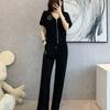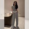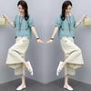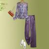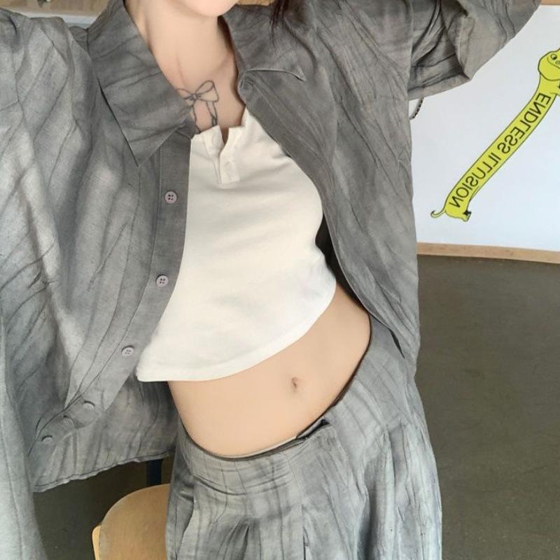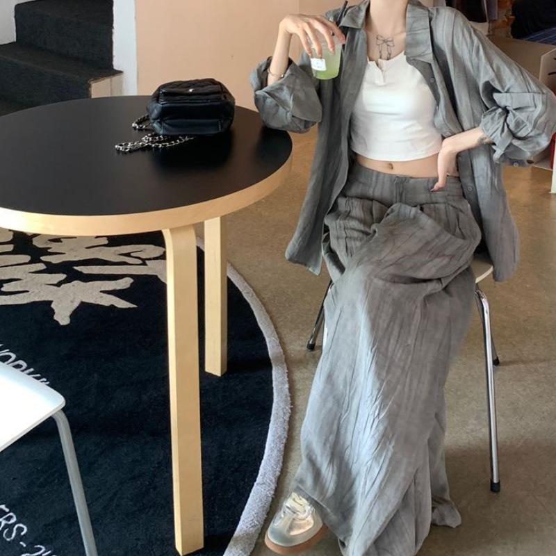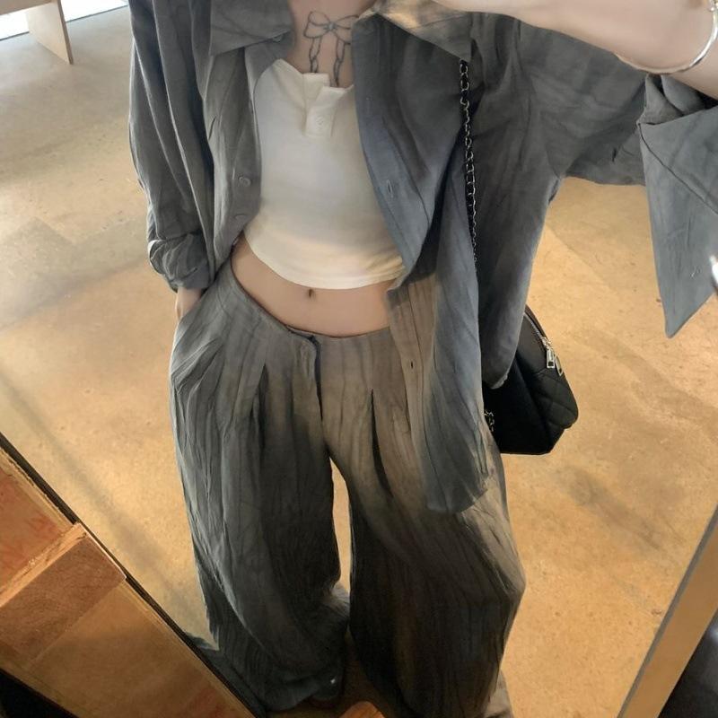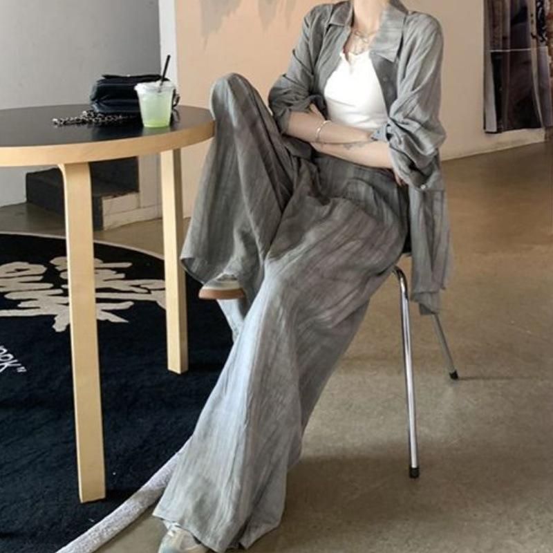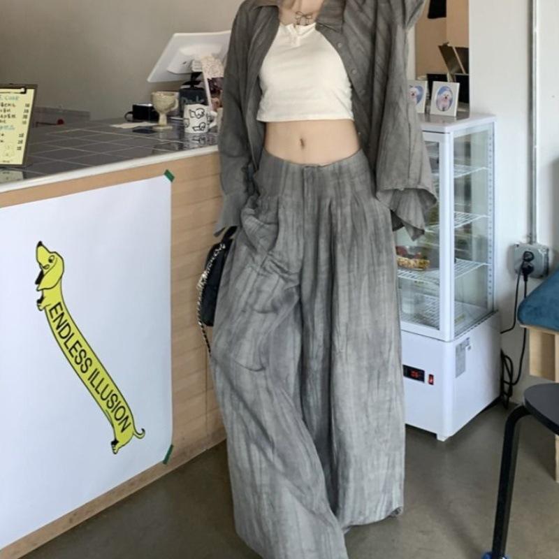 Traje Retro Camisa Tie-Dye Holgada con Solapa para Mujer 2025 Verano Nuevo Pantalón Casual Holgado de Pierna Ancha Conjunto de Dos Piezas