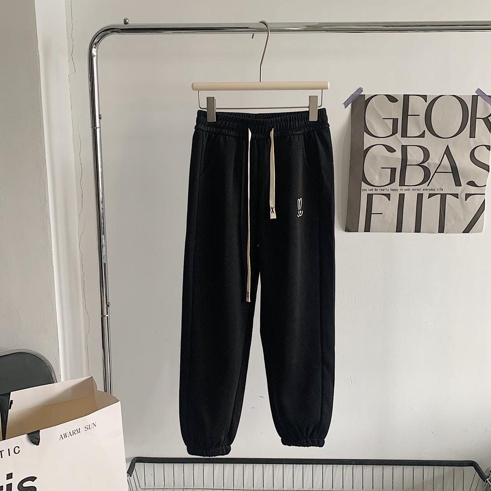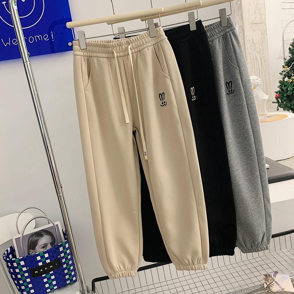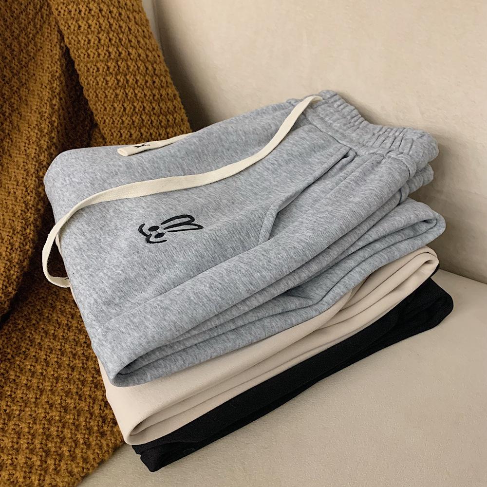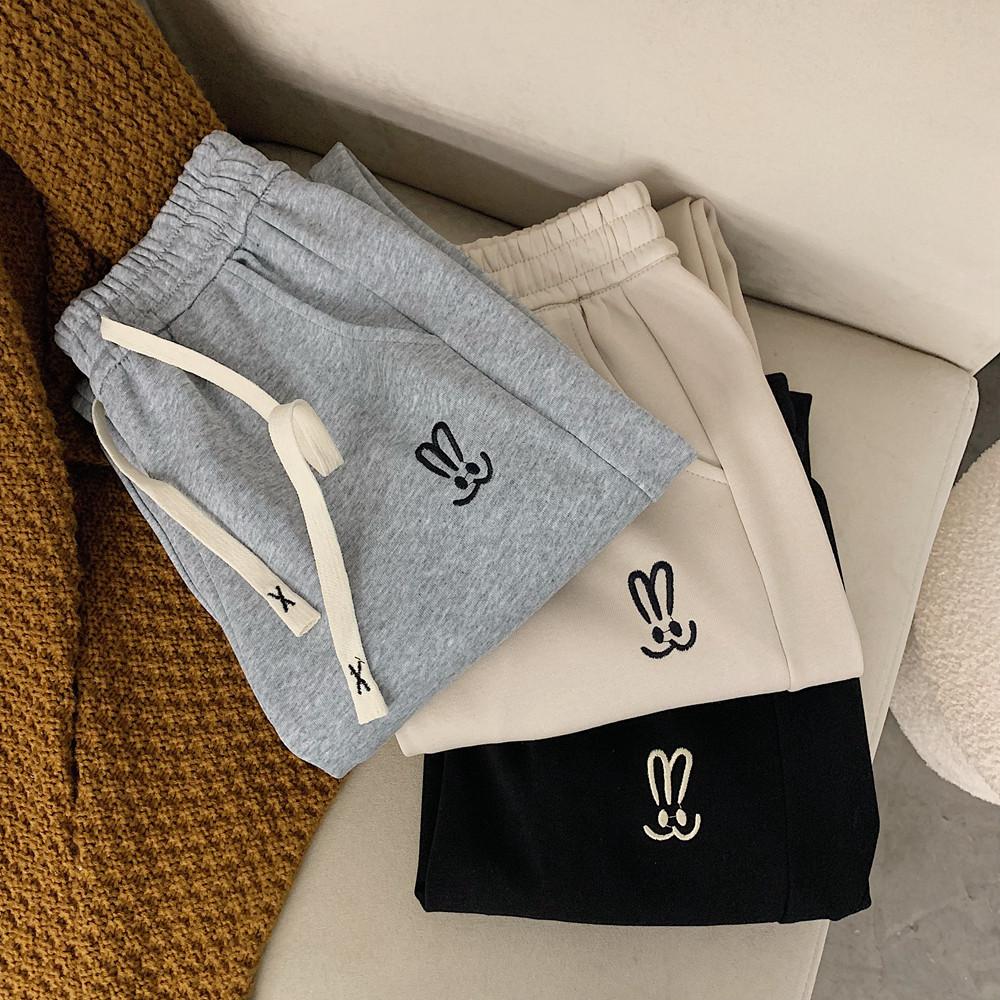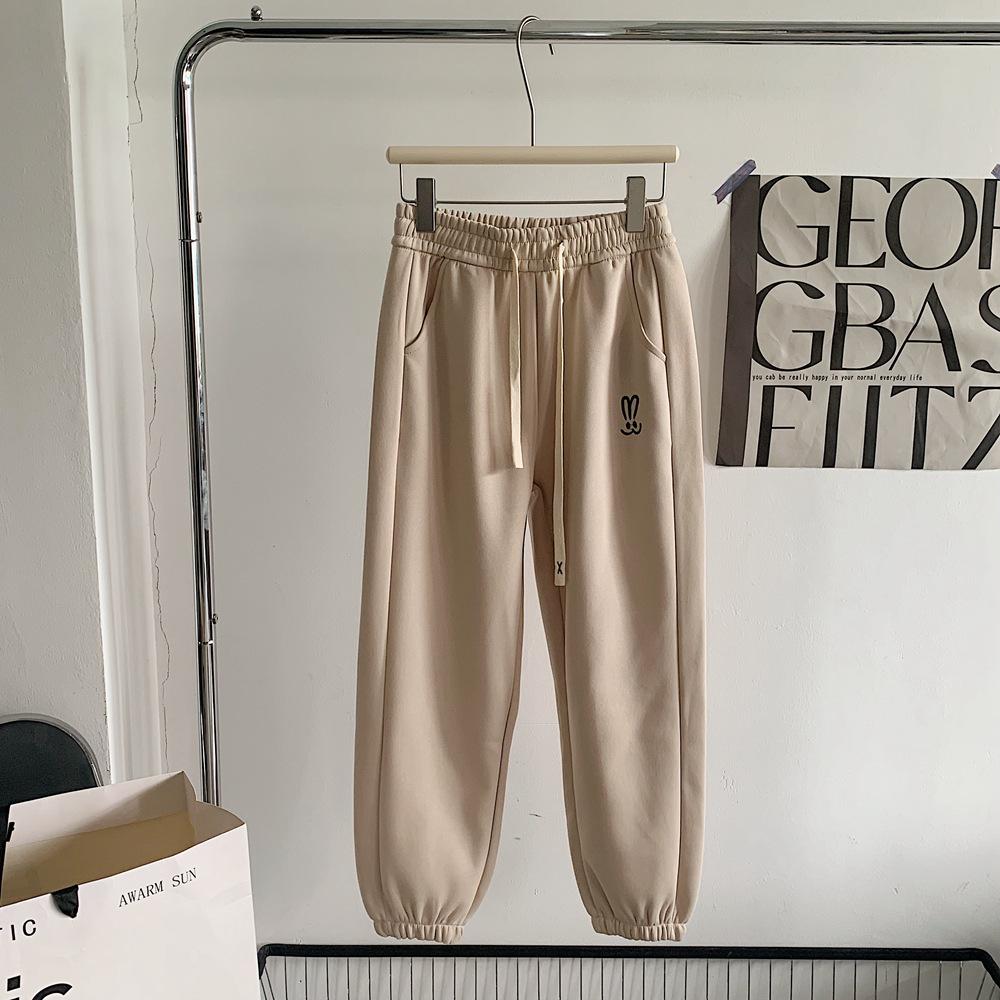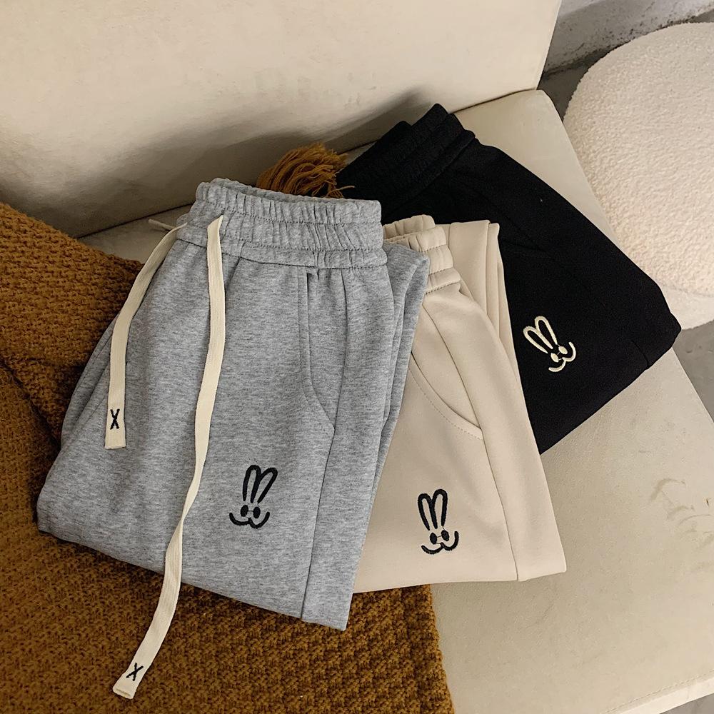 Pantalones deportivos de otoño 2024 nuevo estilo bordados de conejo para mujer de cintura alta con pierna ajustada pantalones casuales que combinan con todo para estudiantes deportivos pantalones harem