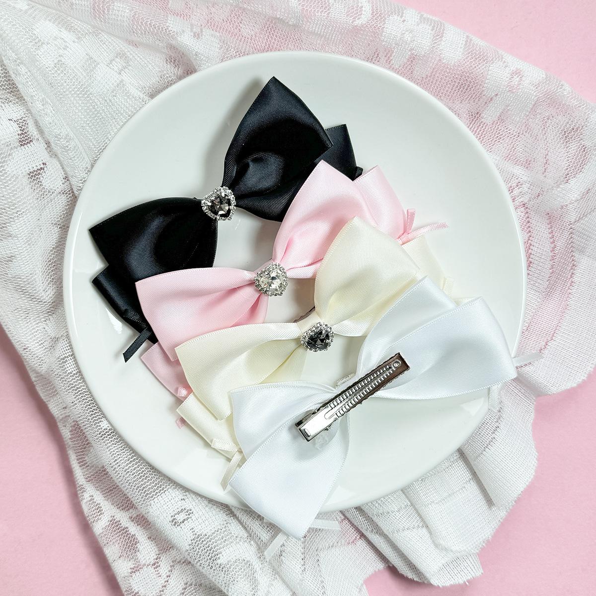 Horquilla con lazo de amor y diamantes de imitación de estilo coreano para niña, con flequillo lateral, pinza superior, accesorios para el cabello de alta gama que combinan con todo.