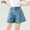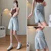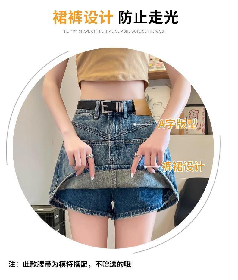 Diseño Retro Denim Short Culottes para Mujer 2024 Verano Nuevo Delgados Talla Grande Cintura Alta Sueltos Adelgazantes