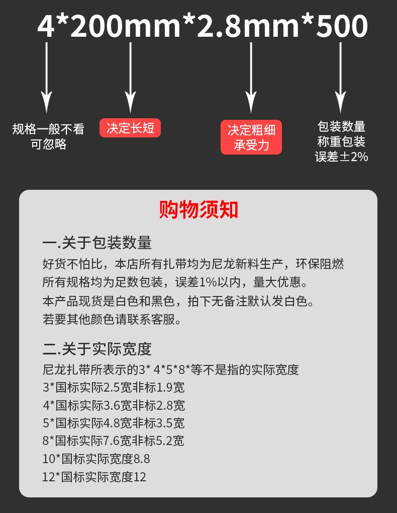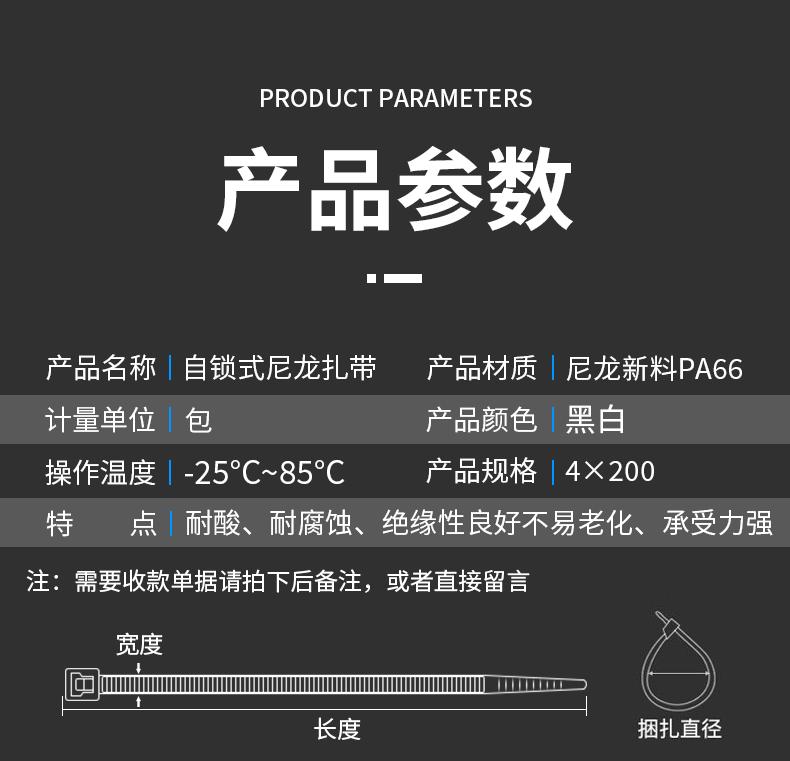 Brida de nailon autoblocante de 4 x 200 de ancho y 2,8 mm de ancho, venta al por mayor de fábrica