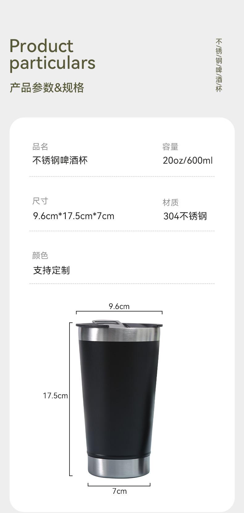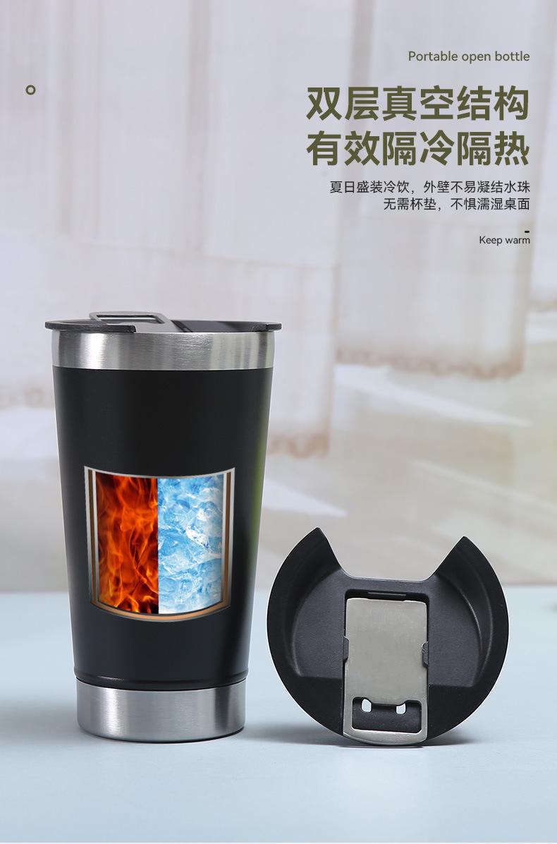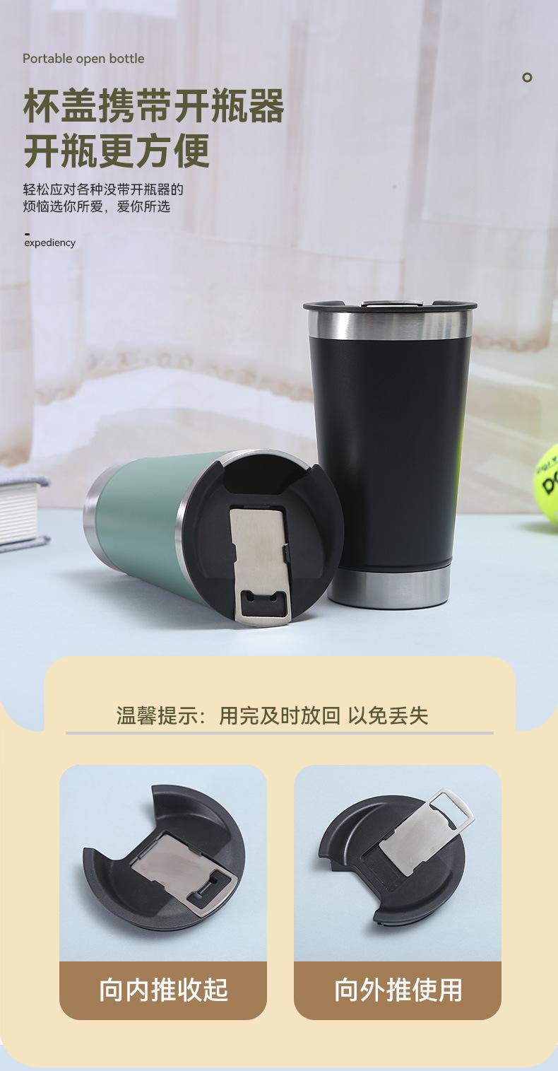 Jarra de cerveza de 20 oz con doble abridor de botellas al vacío, disponible en stock transfronterizo, para coche, para exteriores, termo portátil
