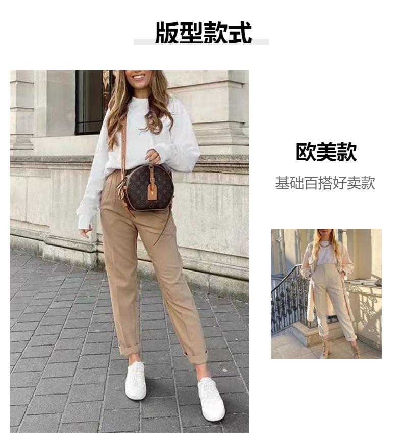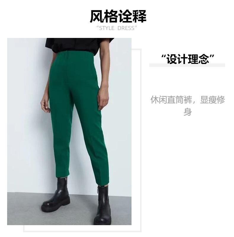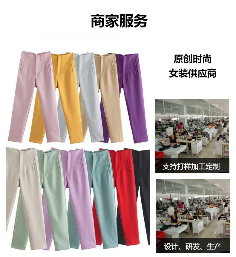 Pantalones rectos ajustados y microelásticos de cintura alta, color liso, estilo urbano transfronterizo de Amazon para mujeres de Europa y América.