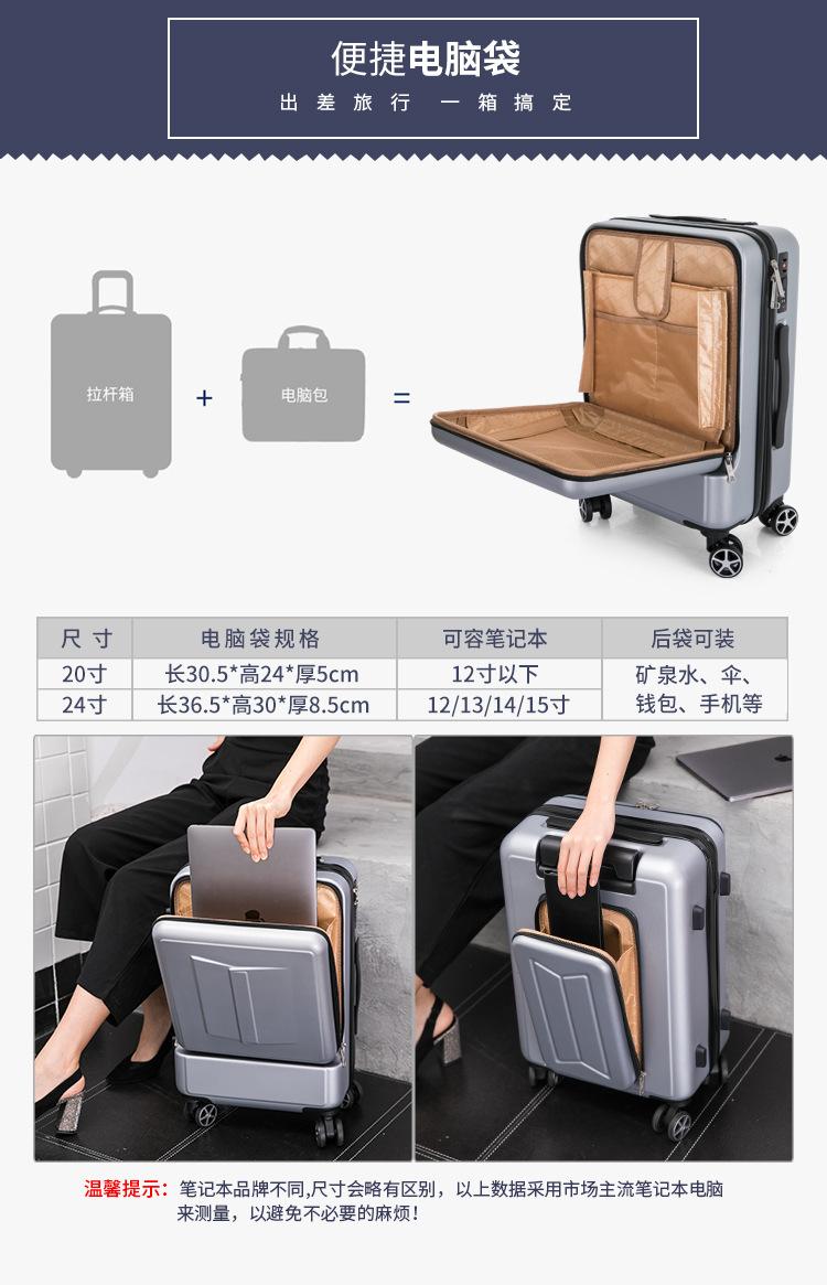 Maletín trolley de negocios de 20 pulgadas, maleta de doble capa, maleta de mano, rueda universal, cremallera, para computadora portátil
