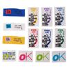 Venta al por mayor de fábrica letras serigrafía tela pegatinas accesorios productos hechos a mano DIY bolsas tejidas para joyería accesorios para el cabello marca registrada