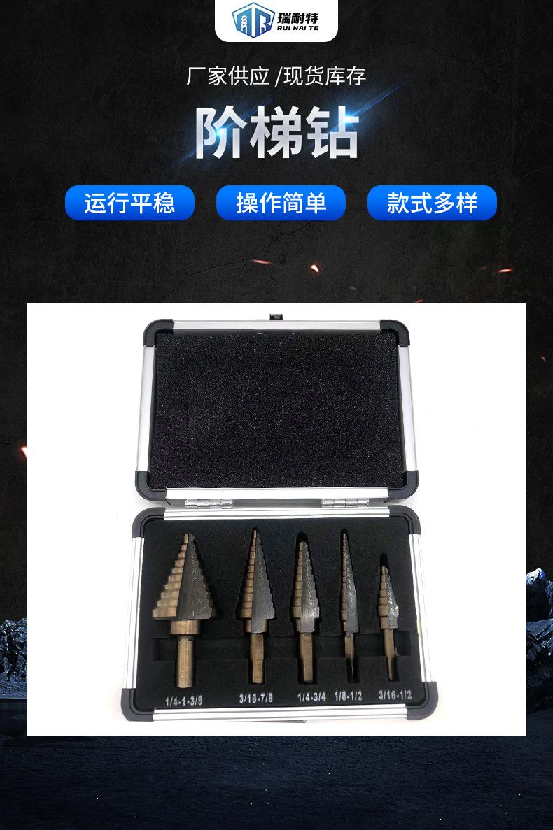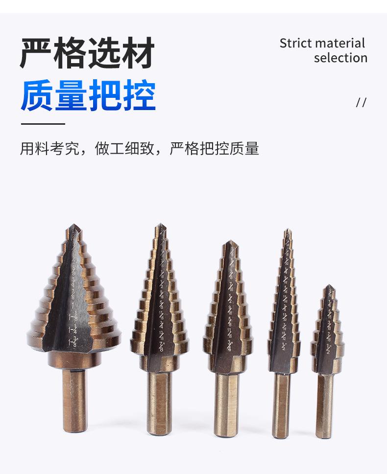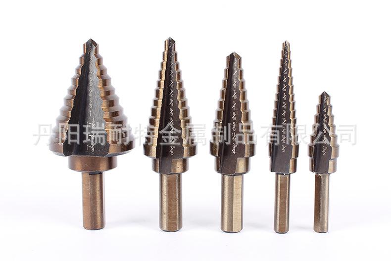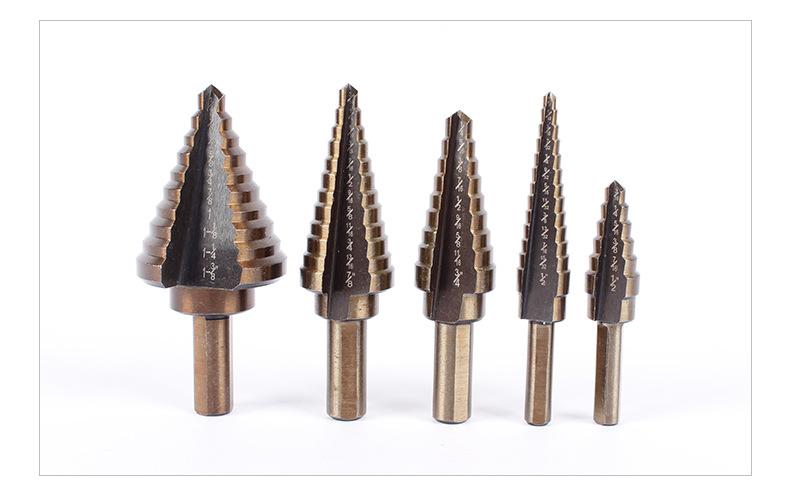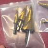 Broca pagoda al por mayor acero de alta velocidad pulgada horneado amarillo broca escalonada taladrado triangular escariado juego de brocas pagoda 5 piezas