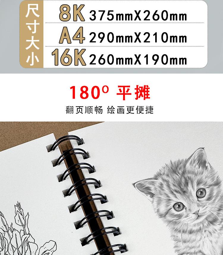 Cuaderno de Bocetos A4 Cuaderno de Bocetos Portátil para Estudiantes de Arte Libro de Dibujo 8K Libro de Imágenes en Blanco 16K 160g Engrosado
