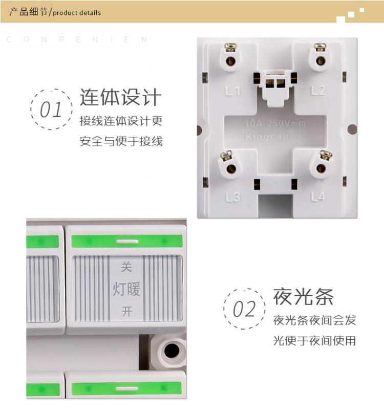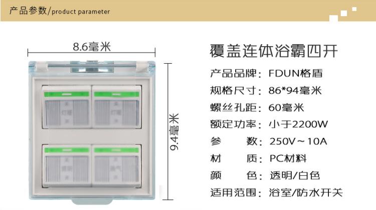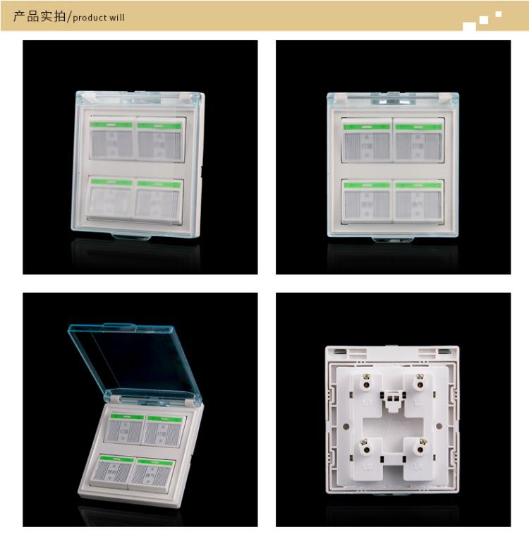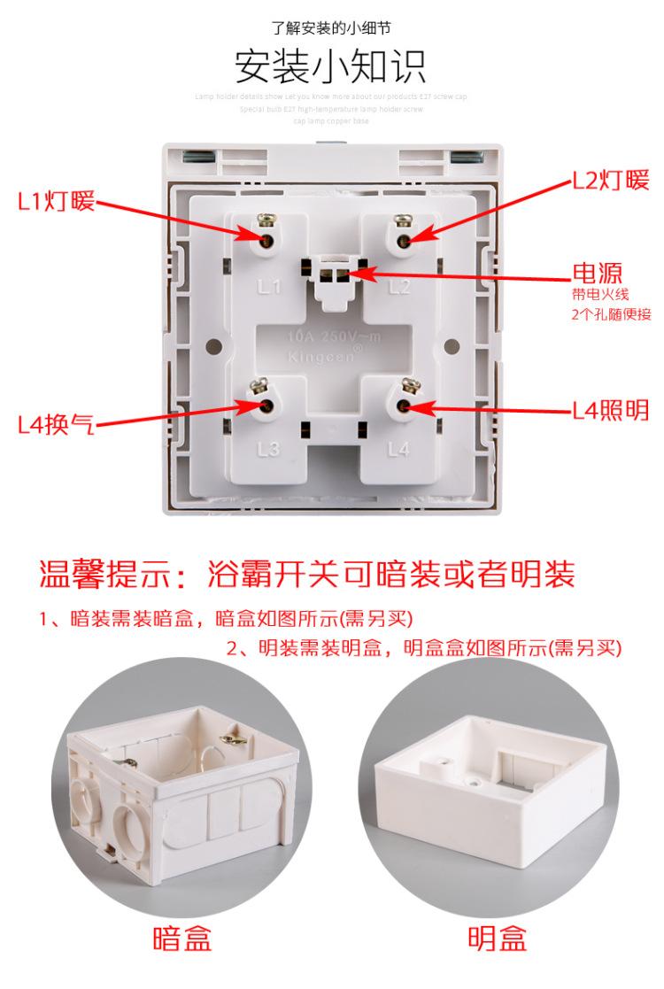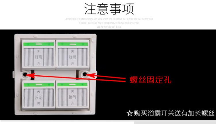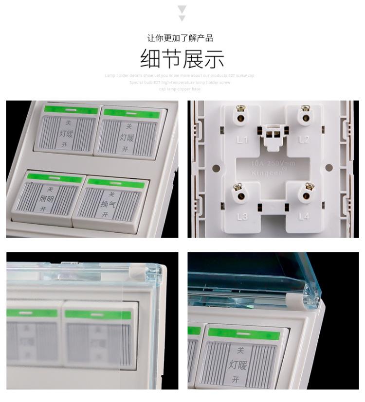 Calentador de baño de cuatro aberturas, luz universal, calefacción, panel tipo 86 impermeable con tapa, interruptor de baño cuatro en uno para baño doméstico de 4 aberturas
