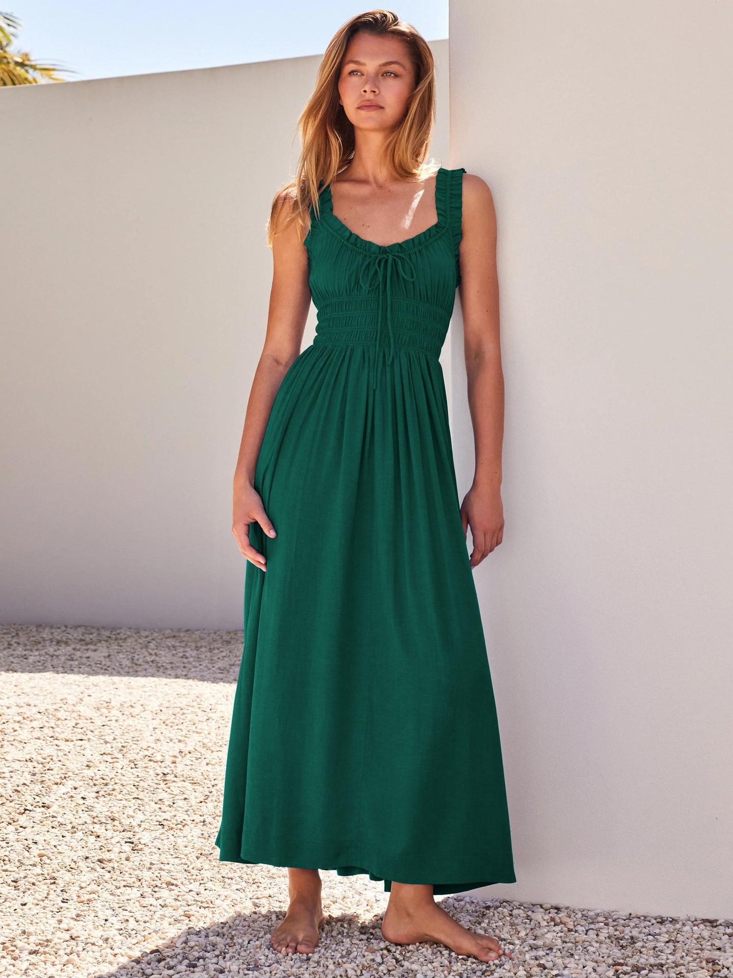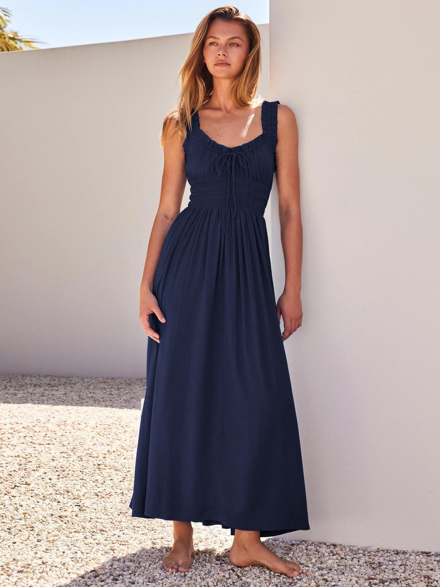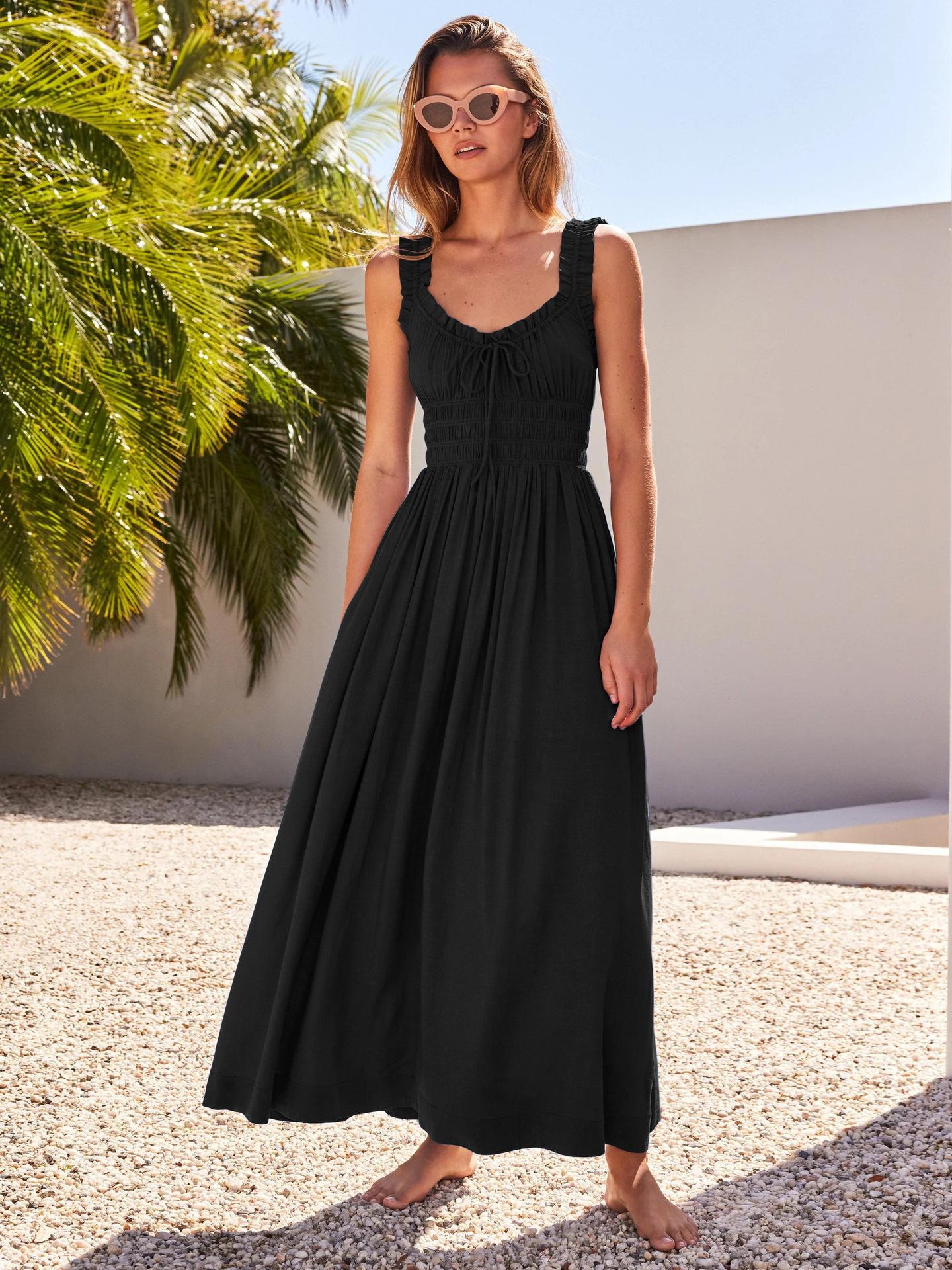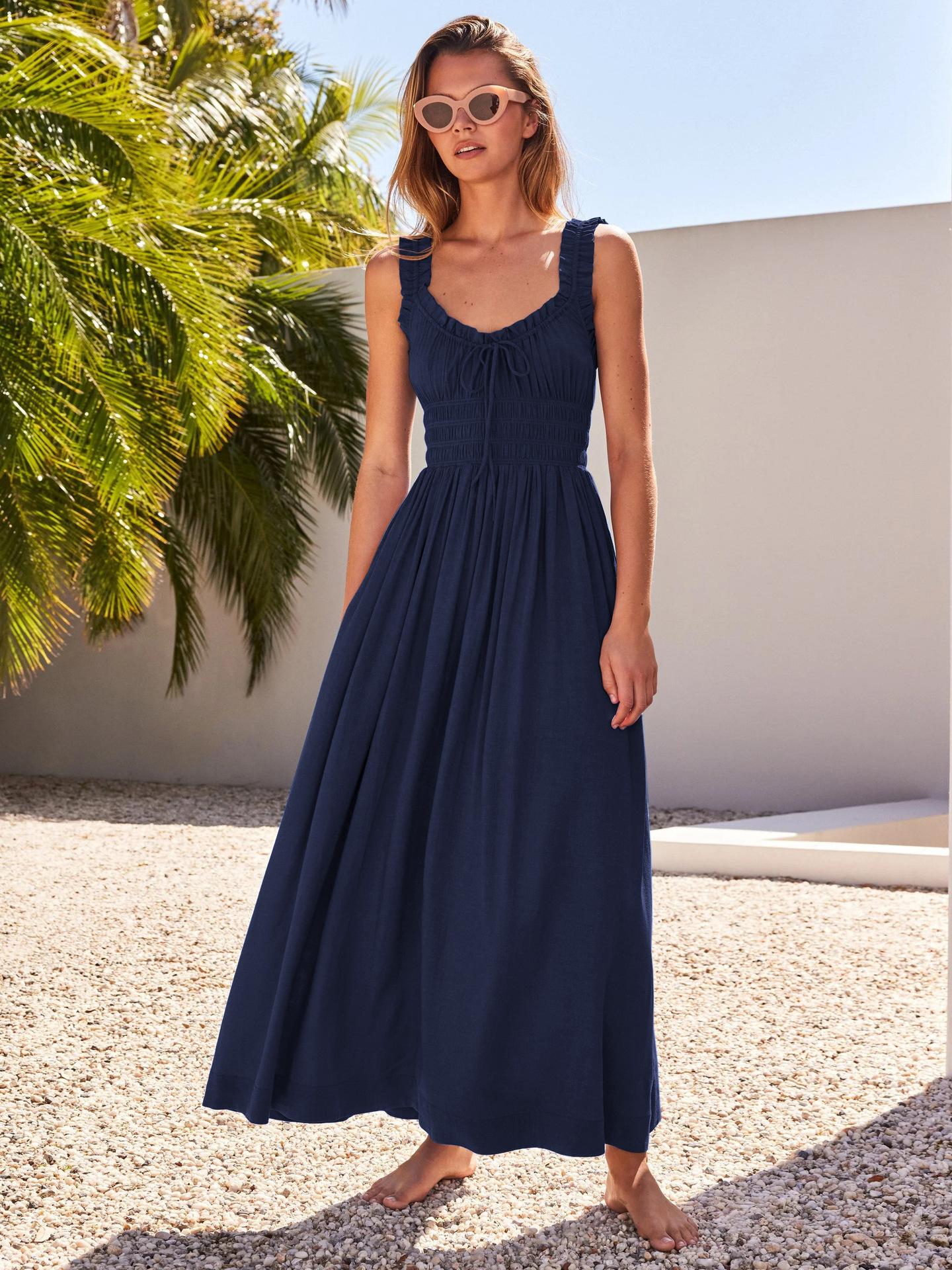 Amazon Transfronterizo Nuevo Vestido Casual de Tirantes para Mujer para la Playa Vestido Europeo y Americano Vestido Francés de Alta Gama para Vacaciones