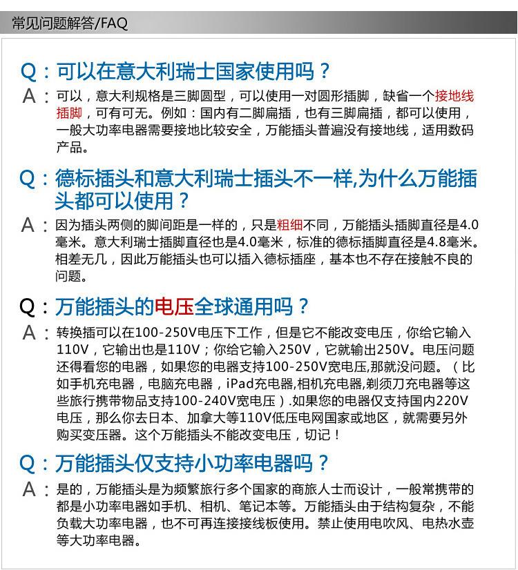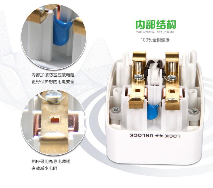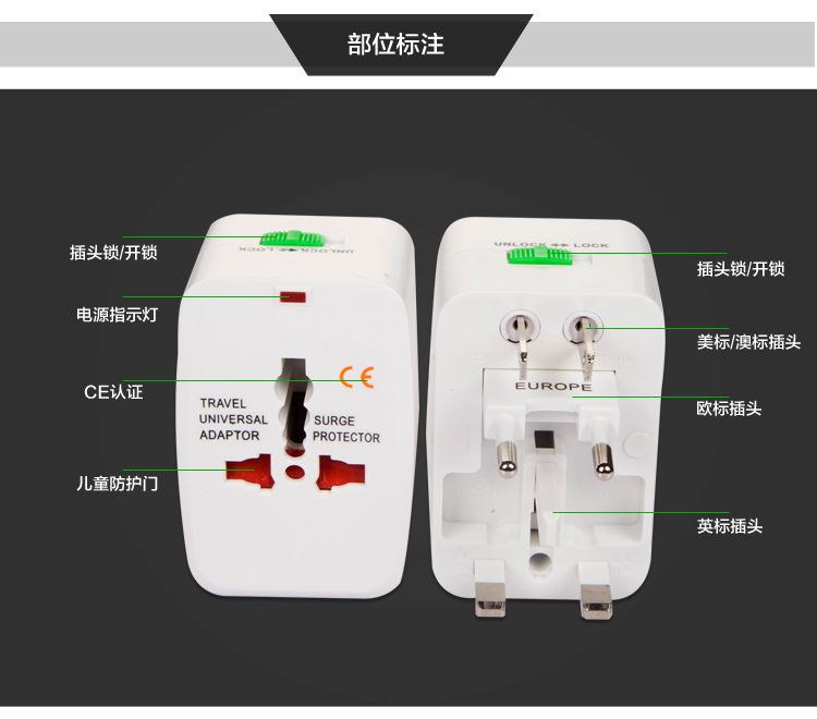 Características:Protección de puerta de seguridad contra descargas eléctricas, diseño exquisito, pasador de alimentación desmontable, lo que lo hace más cómodo de llevar.
