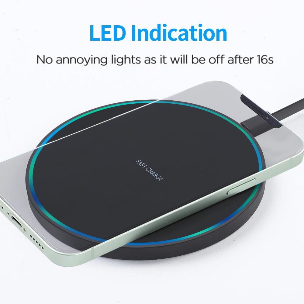 Cargador inalámbrico inteligente QI de 10 W con aceite de goma, de plástico, redondo, simple, para escritorio, teléfono móvil, carga rápida, carga inalámbrica
