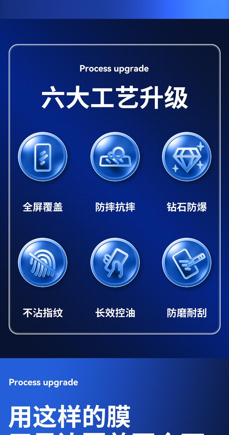 HD, Explosion-proof, Dustproof, Anti-fingerprint, Anti-fall, Full screen, Non-full screen, Second sticker box