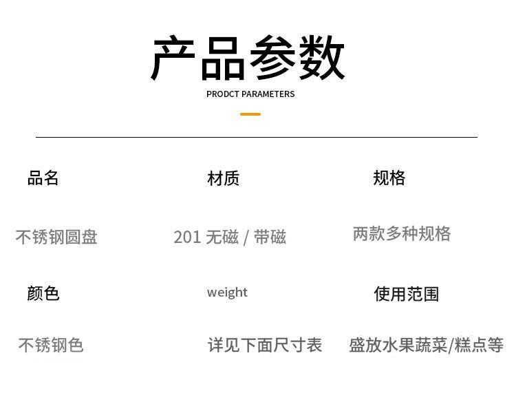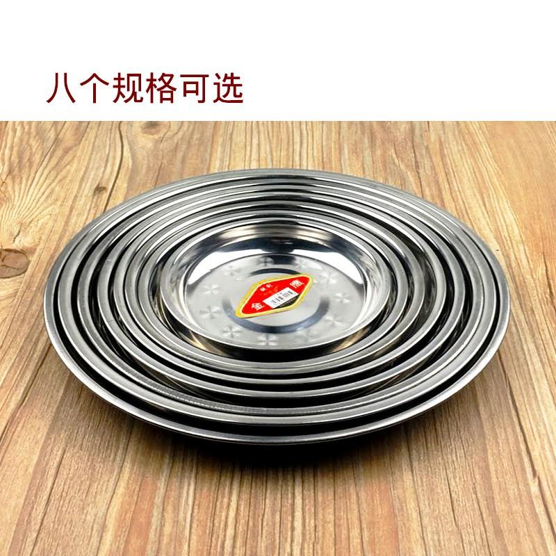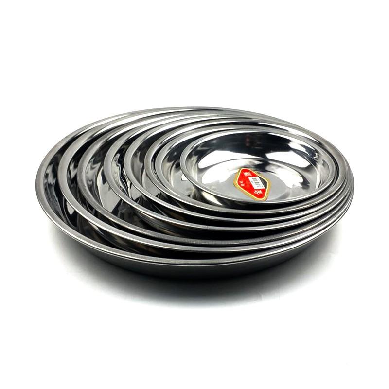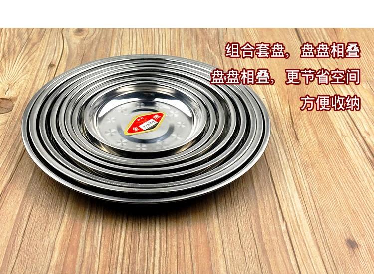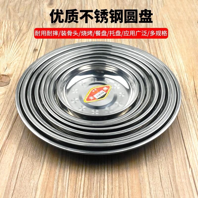 Plato de acero inoxidable, redondo, para uso doméstico, para comida rápida, plano, para fruta, para barbacoa comercial, de hierro, hondo, para restaurantes.