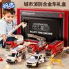 Camión de bomberos de aleación, coche de juguete para niños, camión de bomberos con escalera, modelo de rescate de elevación, juego de regalo para niño