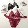 Set de Brasier Francés de Copa Triangular, Espalda Femenina y Hermosa, Encaje Calado, Íntimos sin Varilla, Set de Dos Piezas
