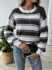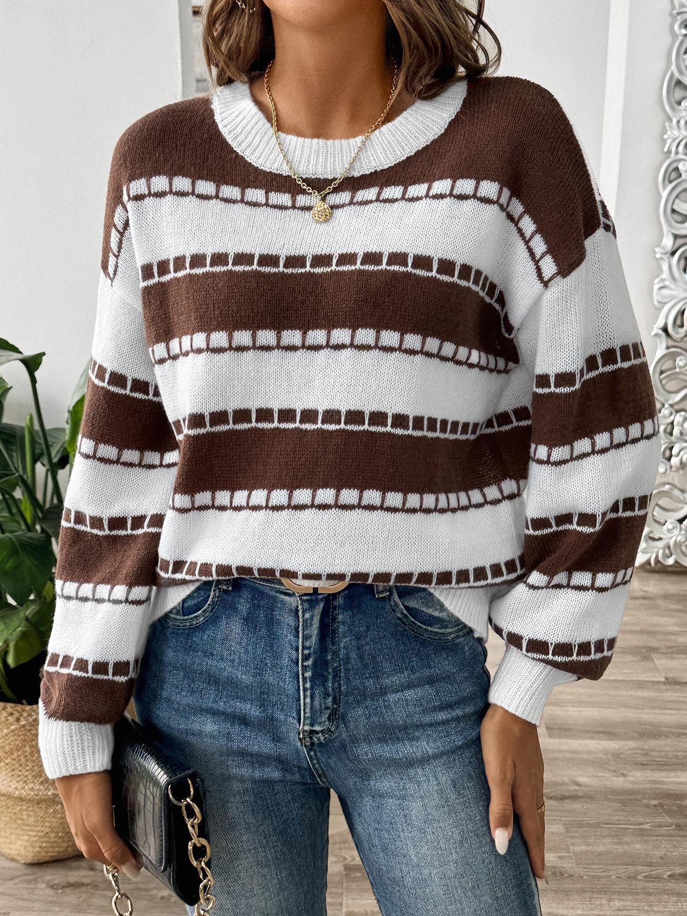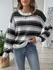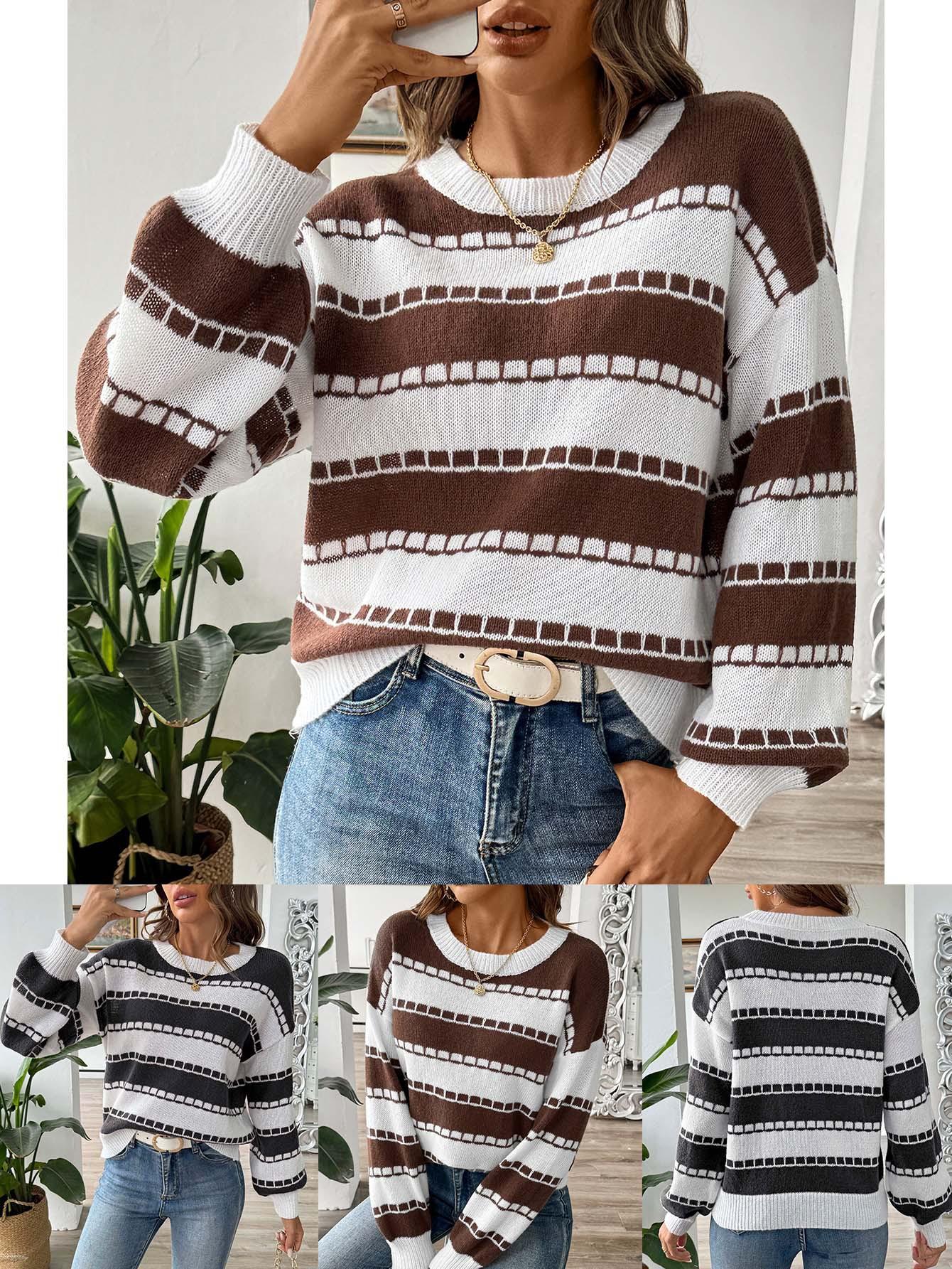 Suéter de Fondo para Mujer Ropa Europea y Americana Transfronteriza Costuras en Color Contrastante Rayado Combinación de Colores Suéter Casual de Punto M687