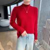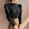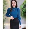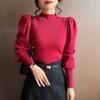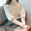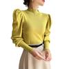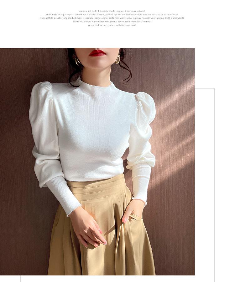 Primavera y Otoño 2025 Nuevo Manga Linterna Cuello Medio Tejido de Punto para Mujer Interior Cuello Medio Bajo Camiseta Pulóver Top Ropa Exterior