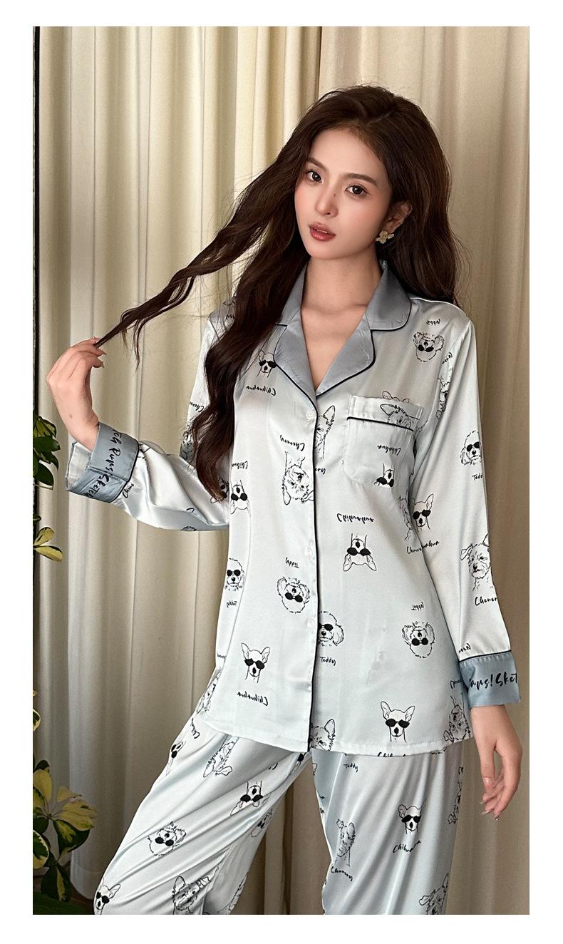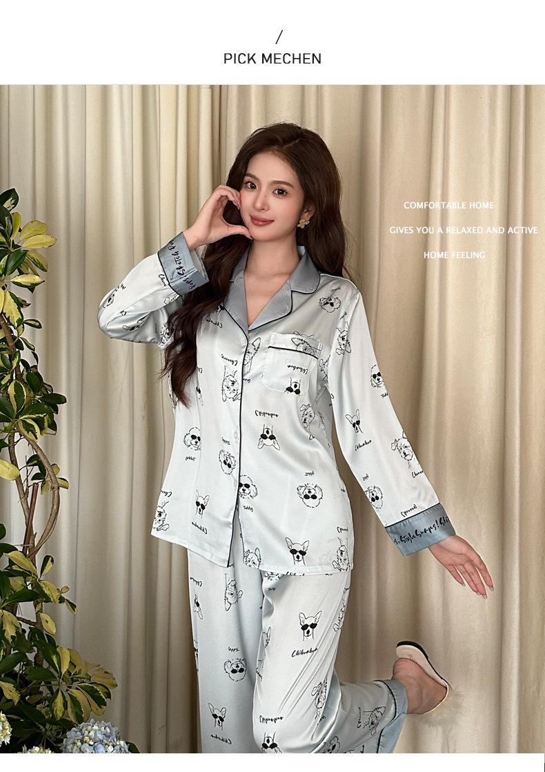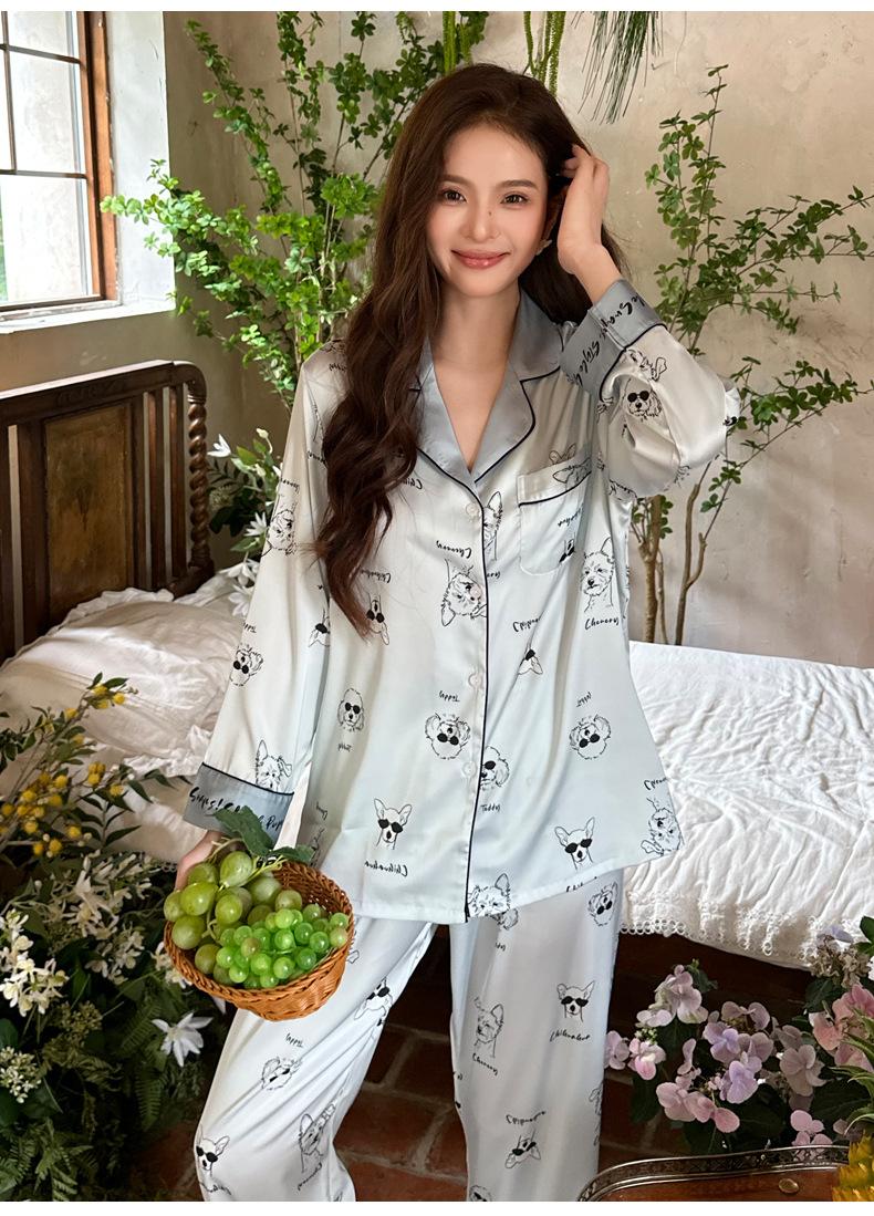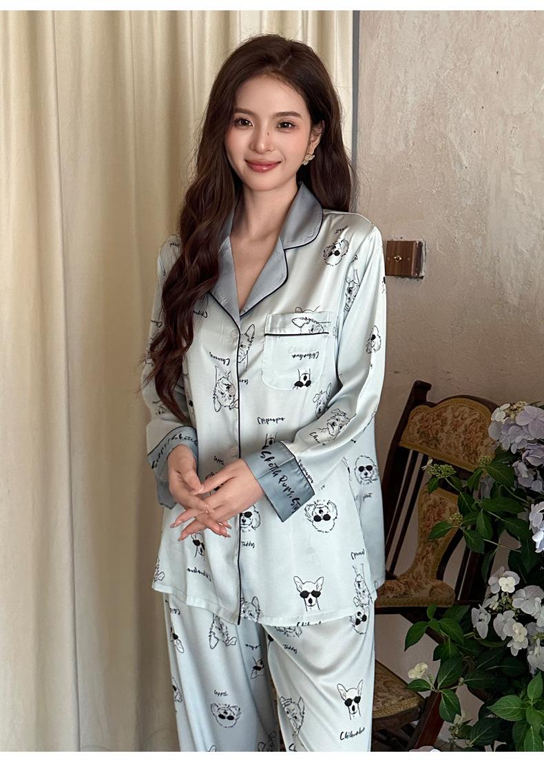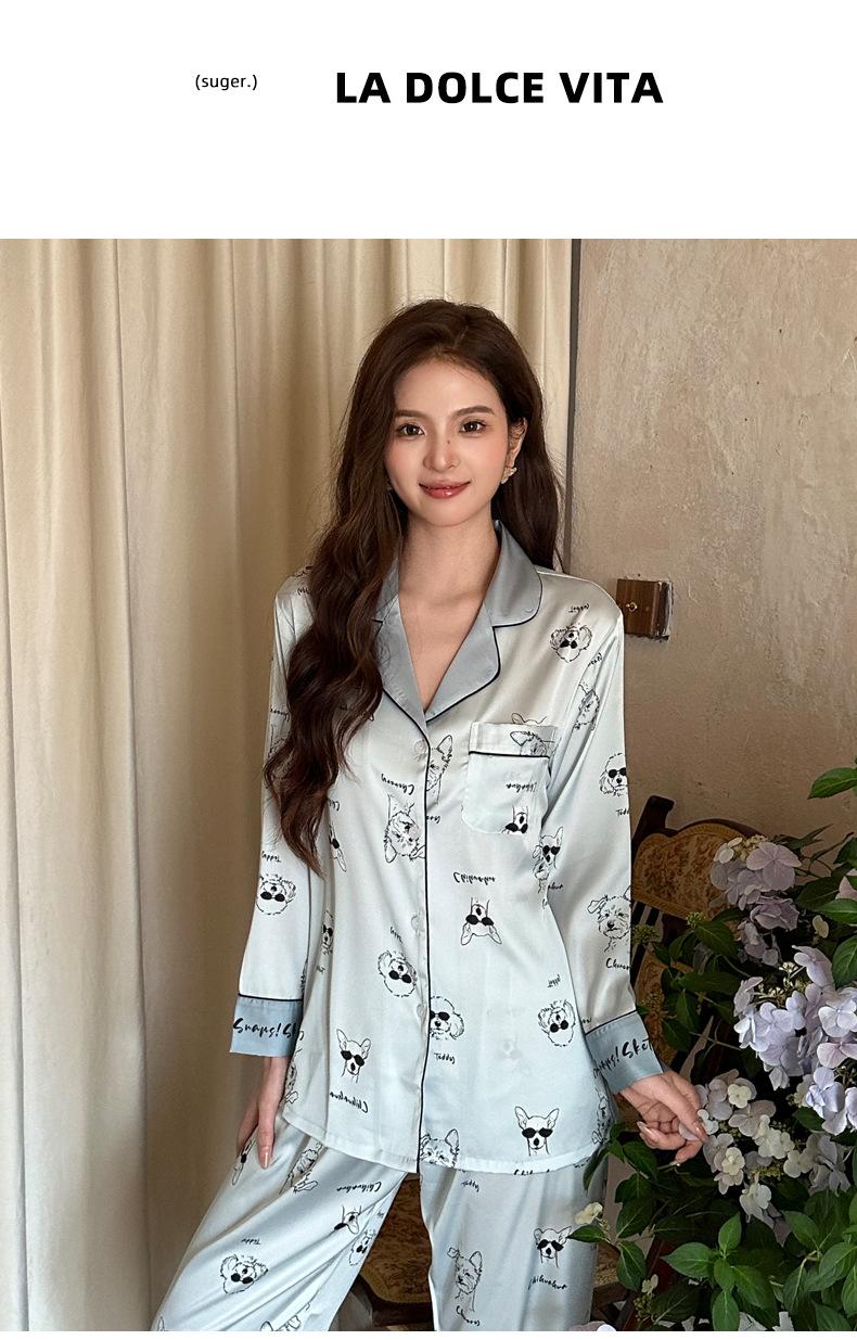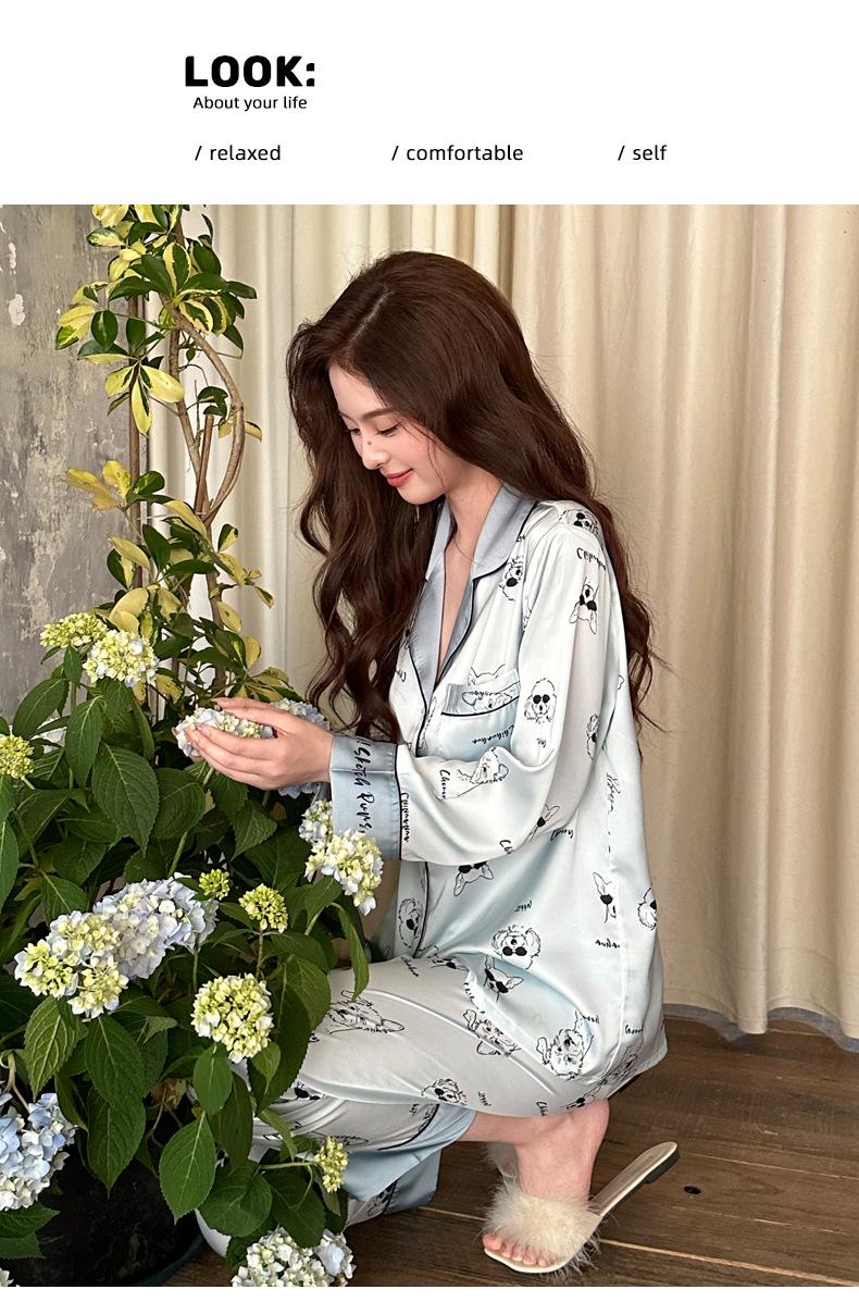 Pijama de mujer de otoño 2024 de manga larga de seda helada, traje de dos piezas con dibujos de cachorros, ropa fina para el hogar, ropa exterior, libro de equitación rojo pequeño