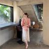 Foto real~Top ajustado de cuello en V dulce y picante para mujer, temperamento a la moda, mangas acampanadas, camiseta chic de manga larga con cordones