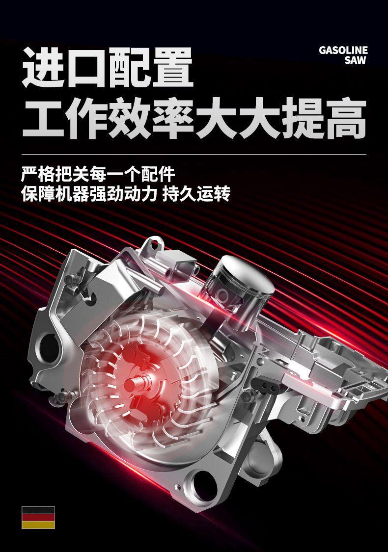Motosierra alemana, sierra de tala importada, sierra de gasolina de alta potencia, motosierra doméstica de alta potencia para cortar árboles y madera, motosierra profesional para jardín