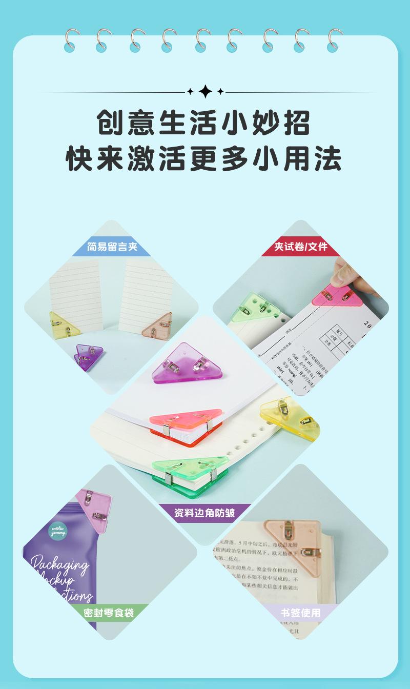 Clip triangular transparente para papelería de oficina, venta al por mayor, clip de cola de milano para hombre, clip acrílico PP, clip para libro, clip antivuelco para archivo, clip de cola larga