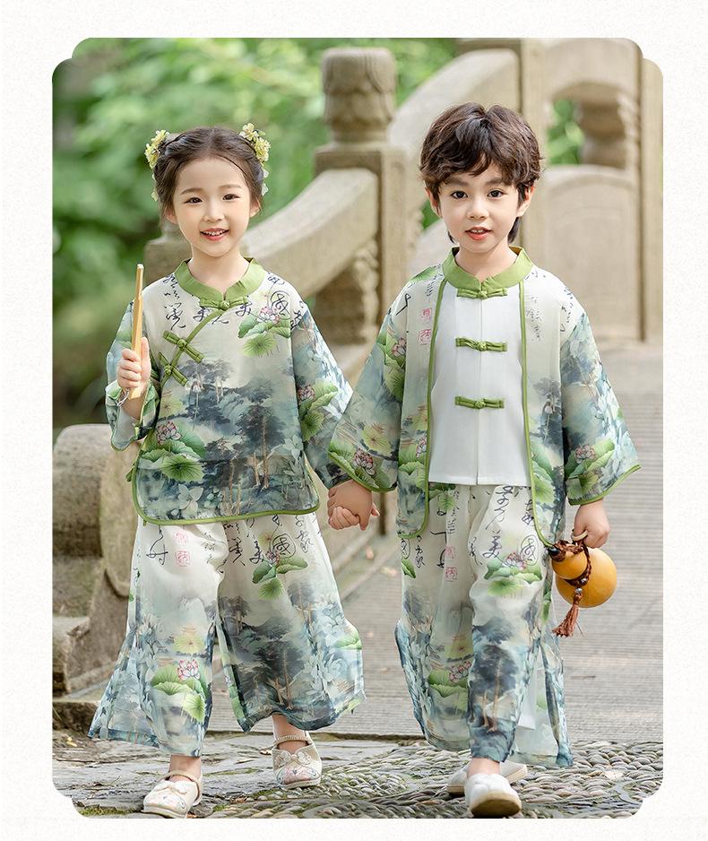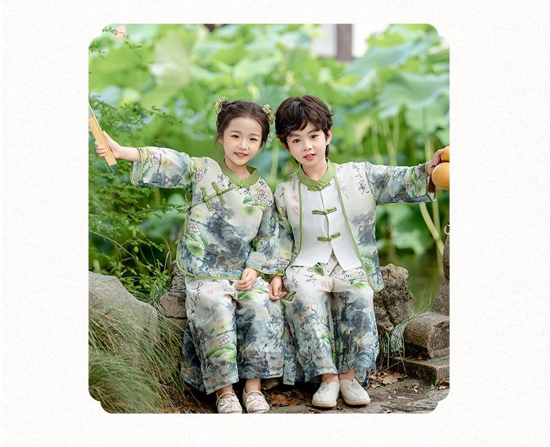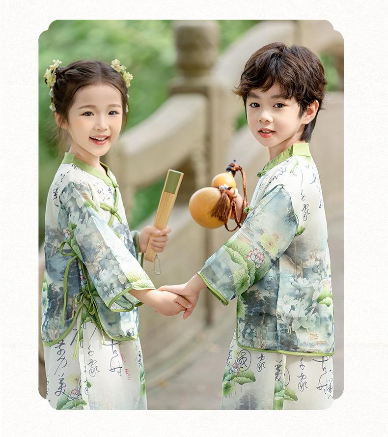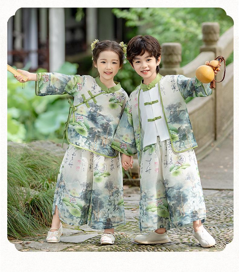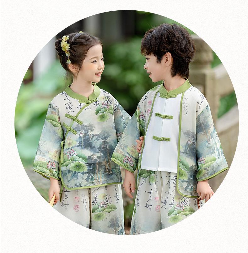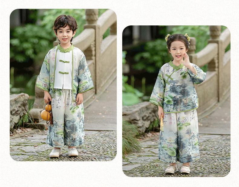 Ropa de Actuación para Niños Estilo Chino Traje Tang Hanfu Nuevo Estilo Chino Estudiantes de Jardín de Niños Festival del Medio Otoño Día de Año Nuevo Ropa de Actuación