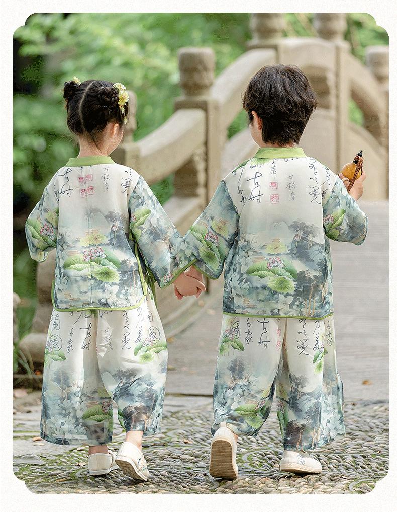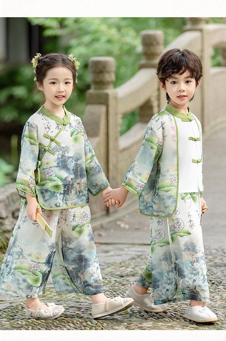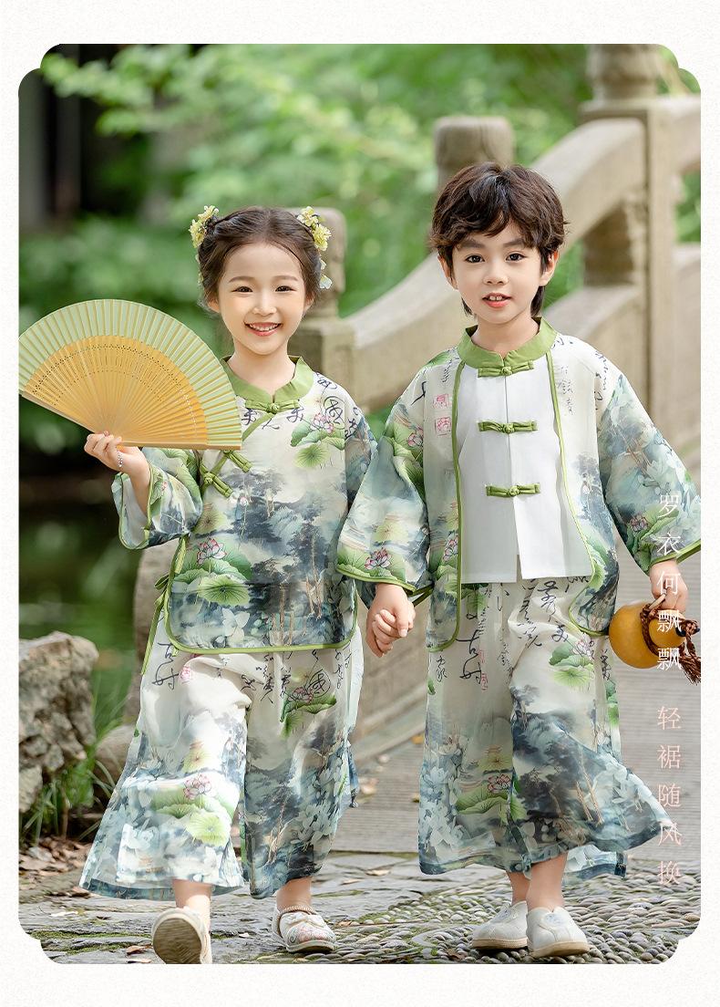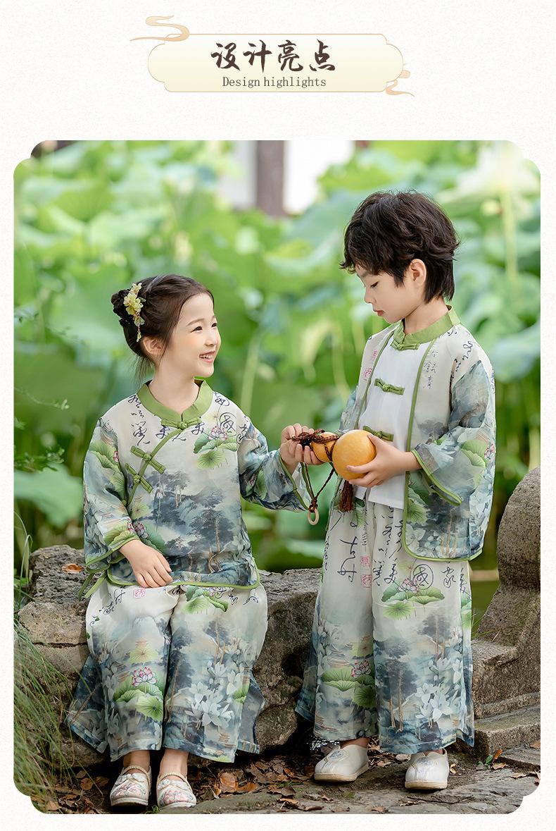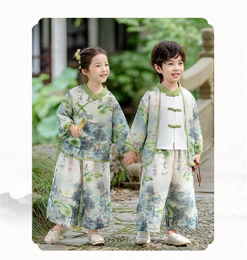 Ropa de Actuación para Niños Estilo Chino Traje Tang Hanfu Nuevo Estilo Chino Estudiantes de Jardín de Niños Festival del Medio Otoño Día de Año Nuevo Ropa de Actuación