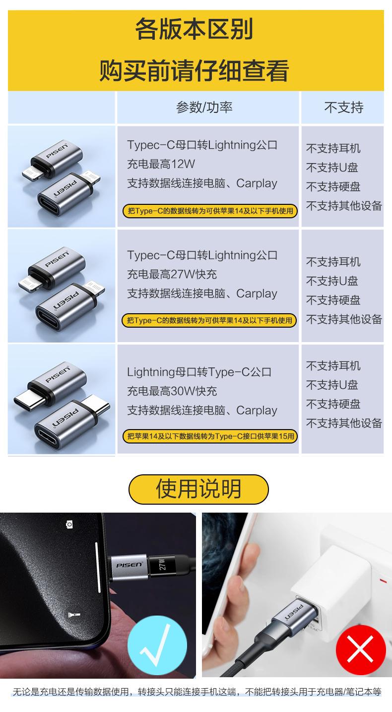 Typec mother to lightning male [12W] charging transmission 2 in 1, Type-C mother to Lightning male [27W] charg...