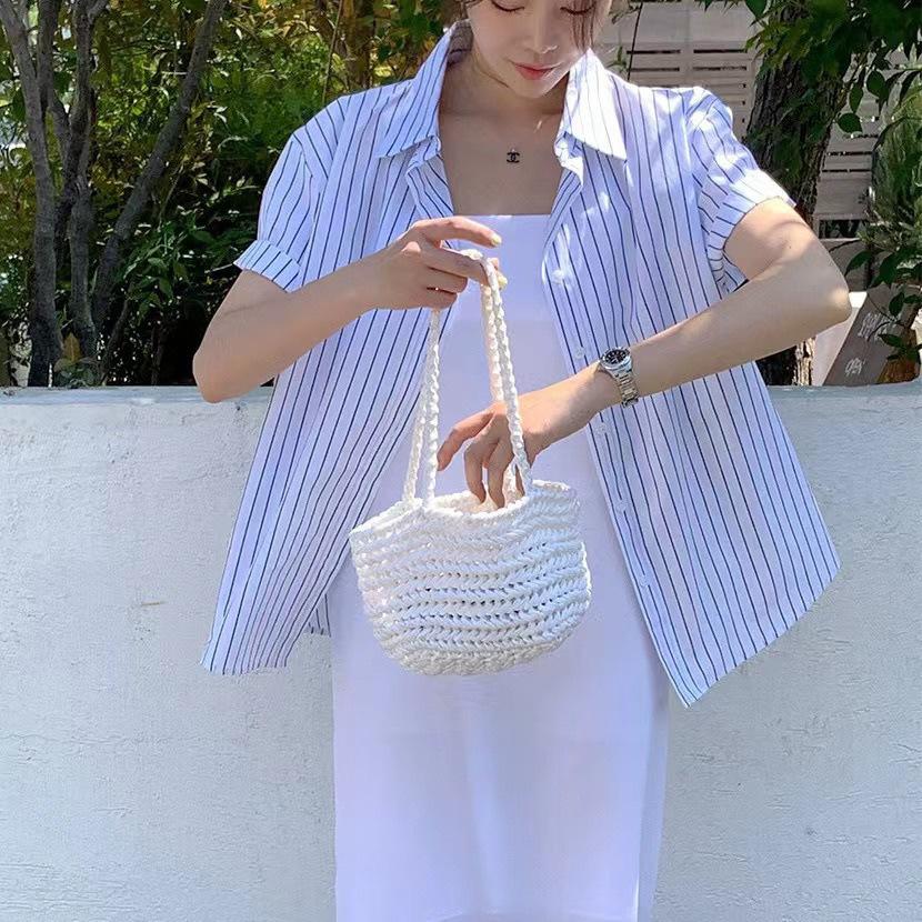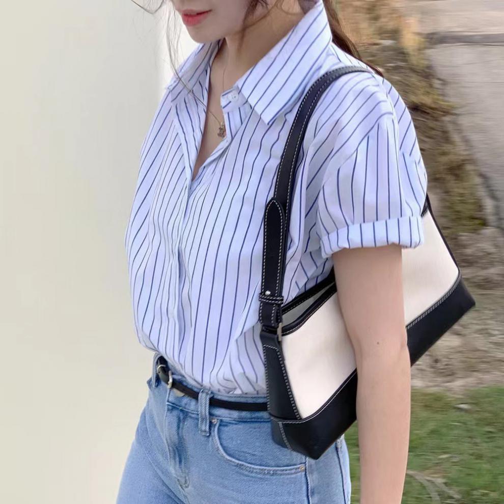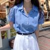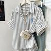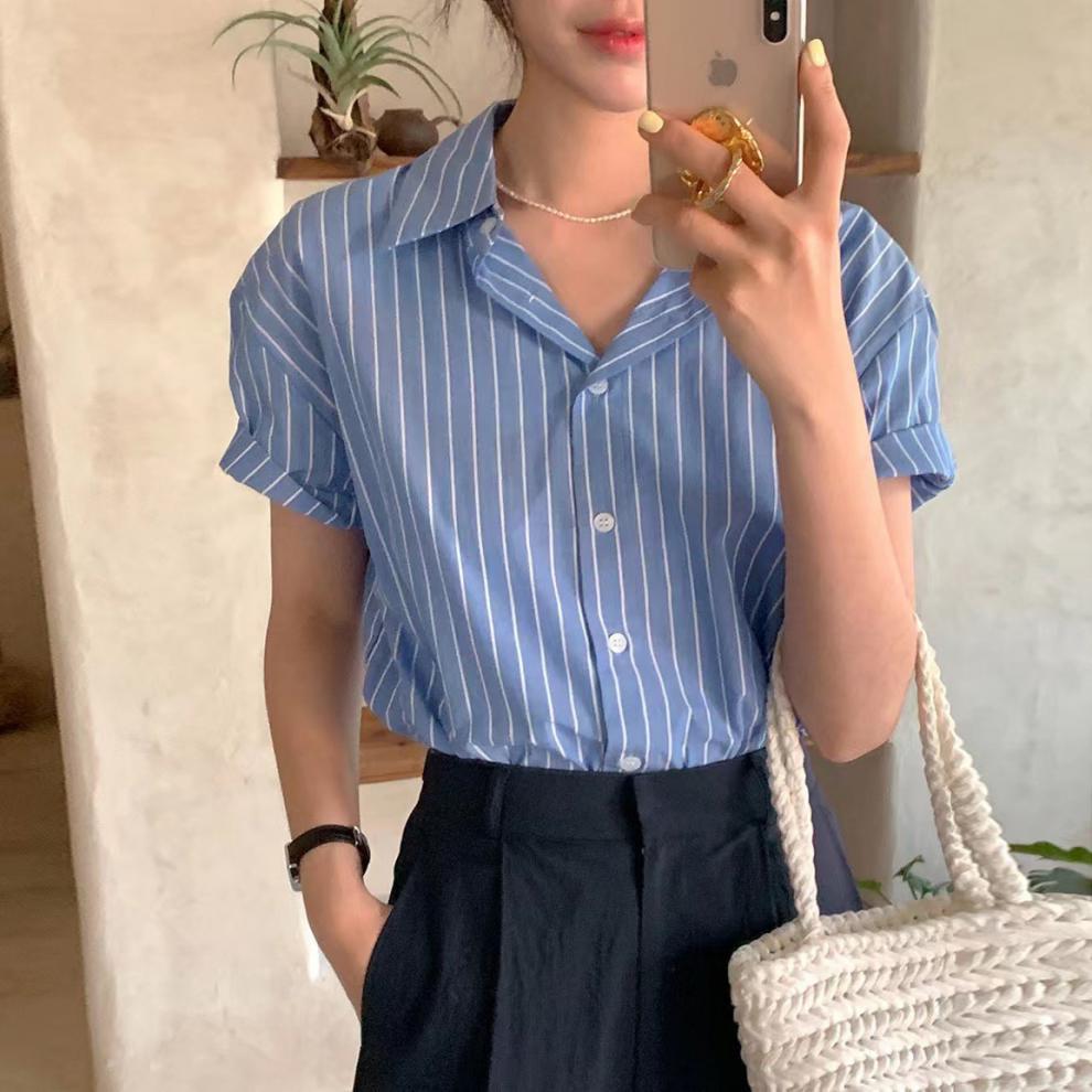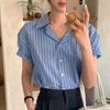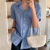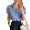 Diseño de Manga Corta Camisa Holgada Rayada Azul Verano 2024 Camisa Casual Nuevo Top
