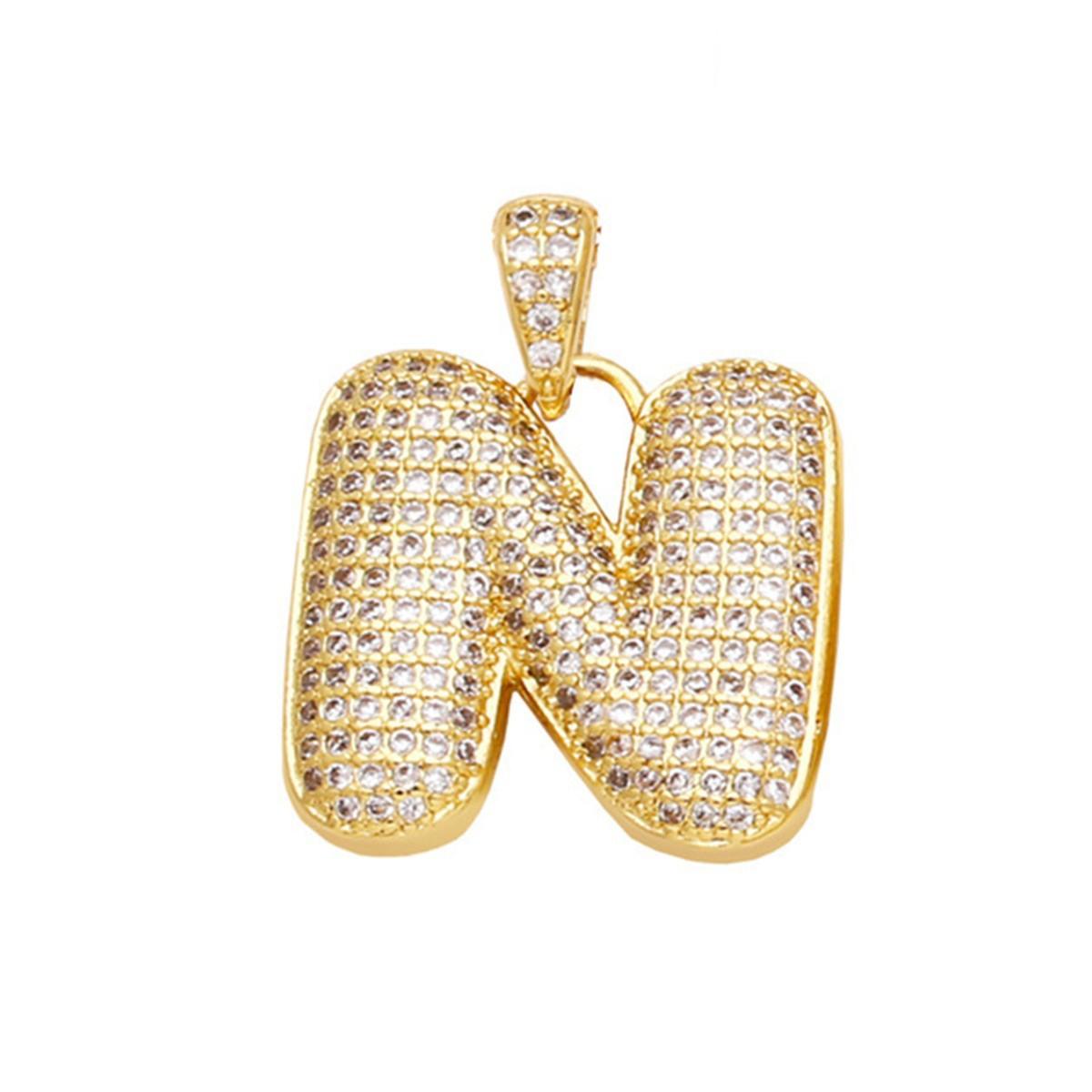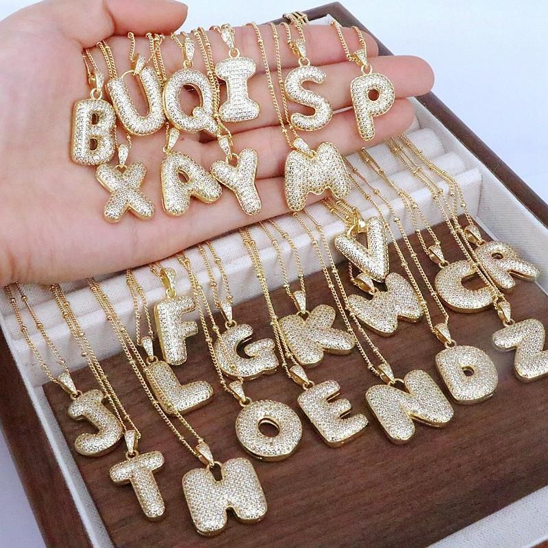Collar con Colgante de 26 Letras Inglesas con Hebilla de Semilla de Melón de Venta Caliente Transfronteriza, Versátil Femenino con Incrustaciones de Circonio Chapado en Oro