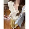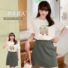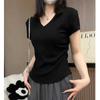 Playera de Talla Grande Estilo Coreano Cuello en V Hombro Derecho Manga Corta para Mujer Verano 2024 Nuevo mm Gordo Suelta Top Corto para Personas Pequeñas