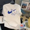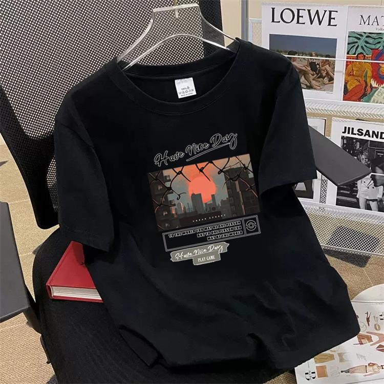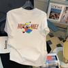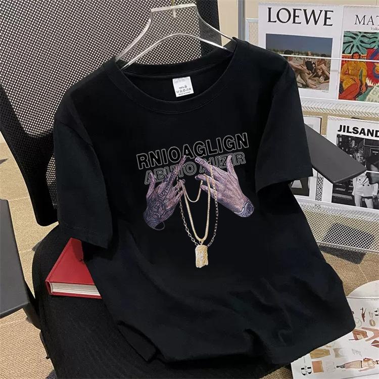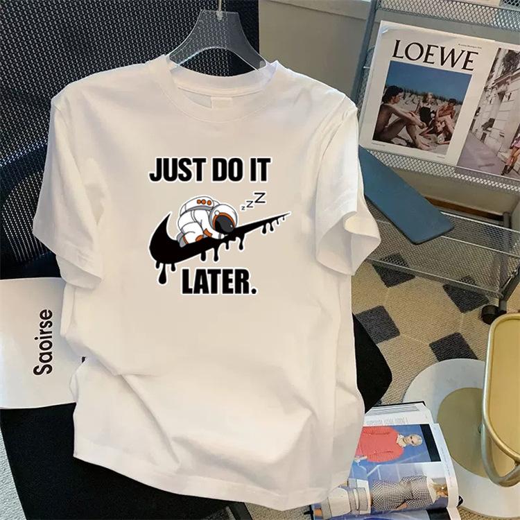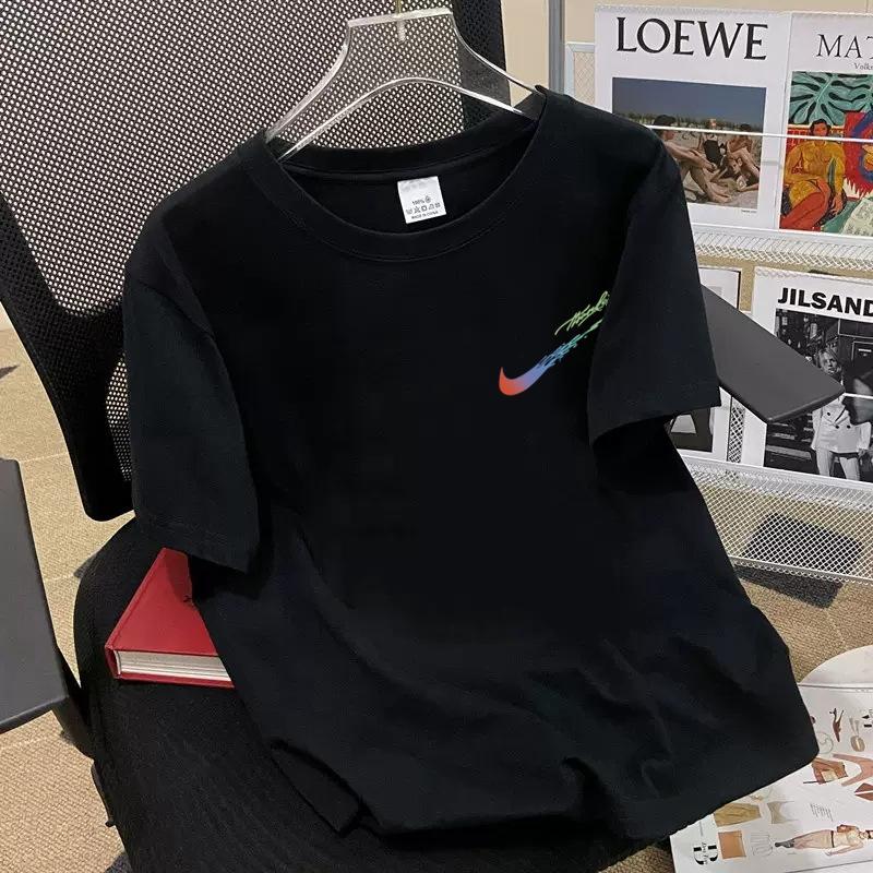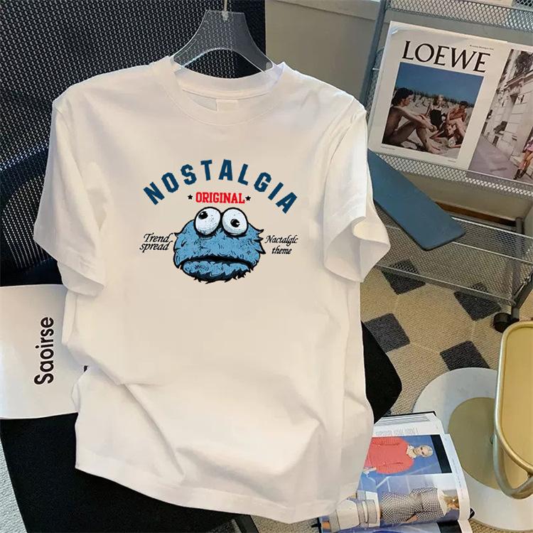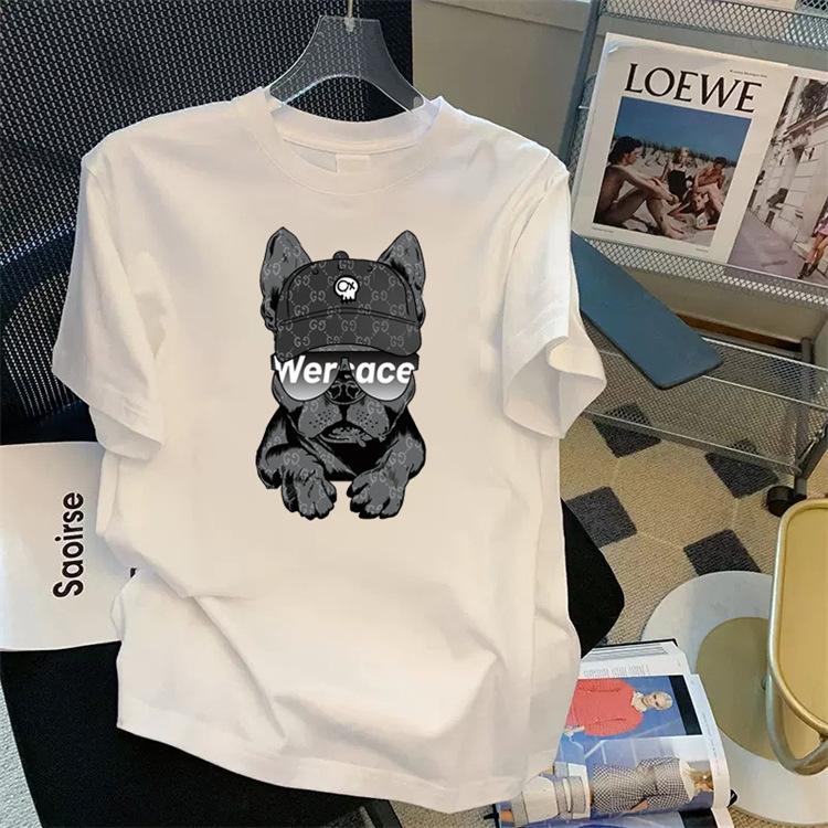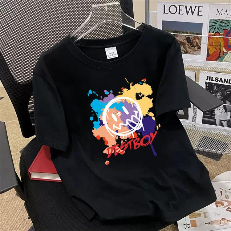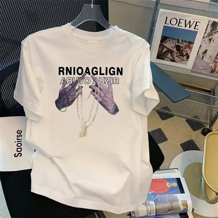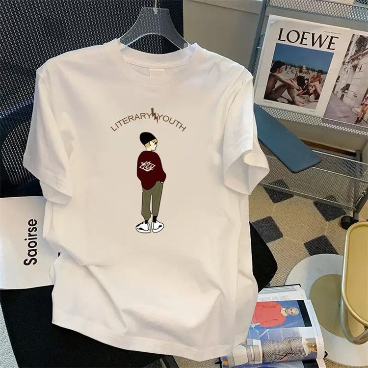 Camiseta de algodón de manga corta, camiseta de marca de moda para hombre, camiseta de hombre de talla grande, suelta, cuello redondo, estampada, estilo coreano, top de moda, venta al por mayor