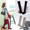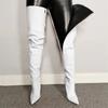 Botas largas coloridas para mujer, otoño e invierno 2021, sexys, puntiagudas, de PU, con cremallera lateral, tacón alto, botas por encima de la rodilla para mujer de talla grande