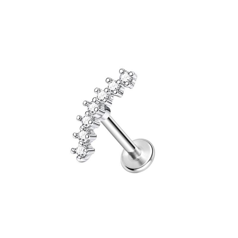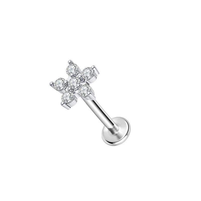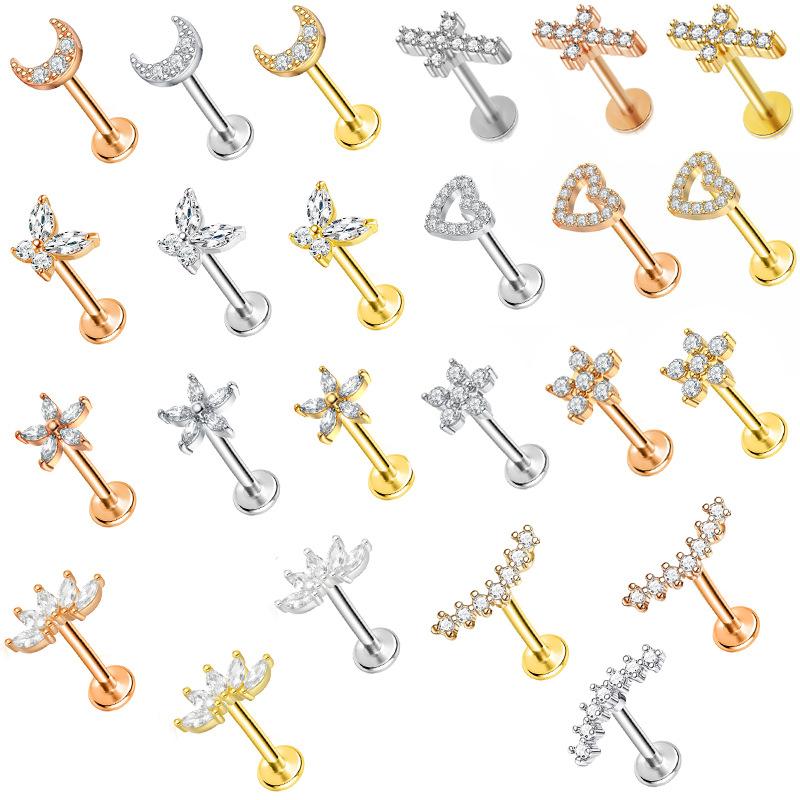 Venta Caliente Barra de Acero Aretes de Cartílago para Mujer Tornillo Uña Labial Corazón Anillo Labial Cruz Zircón Pendientes 16g Grueso Decoración para Perforación
